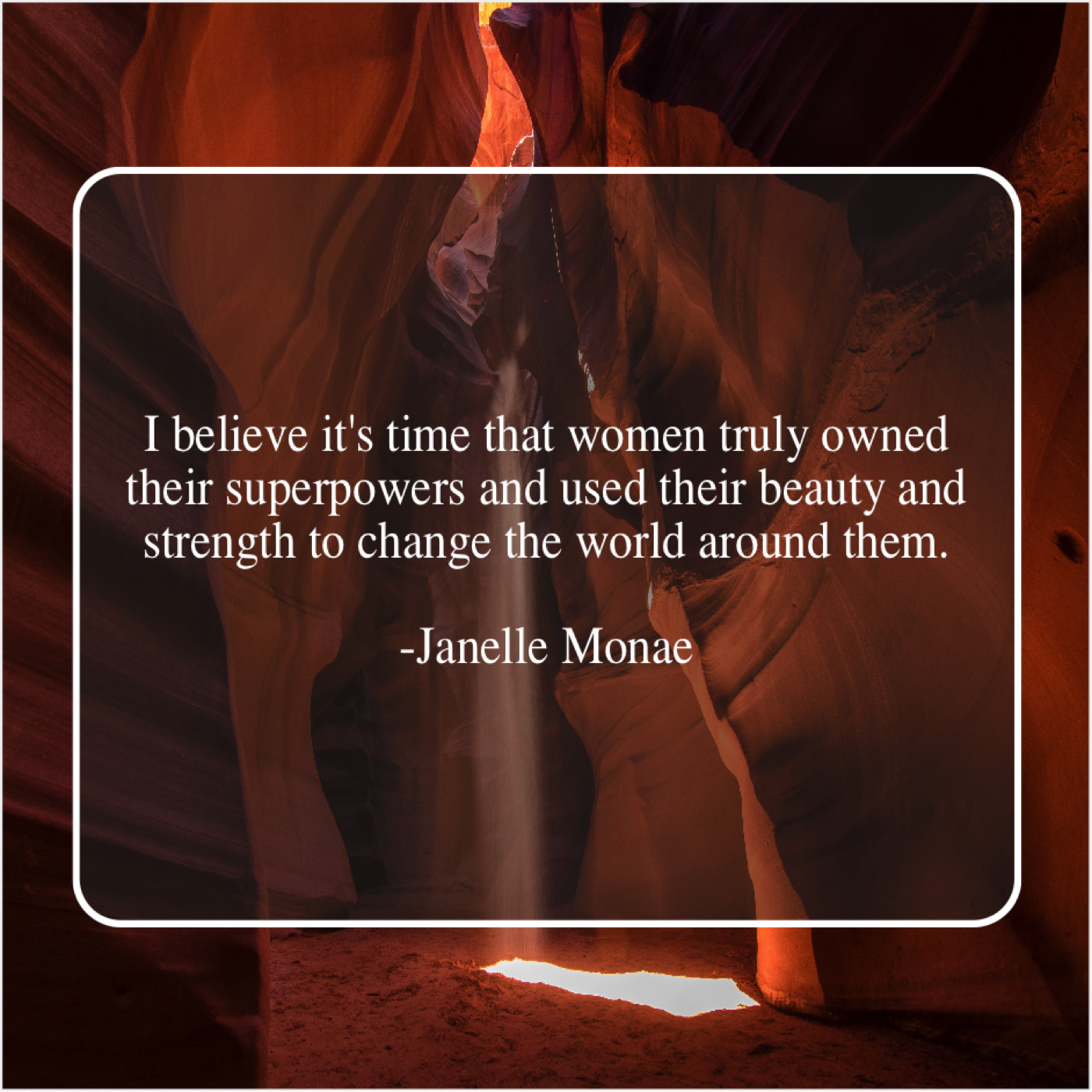 Janelle Monae Janelle Monae – I believe it’s time that… February 3, 2019 admin “I believe it’s time that women truly owned their superpowers and used their beauty and strength to change the world around them.”-Janelle Monae