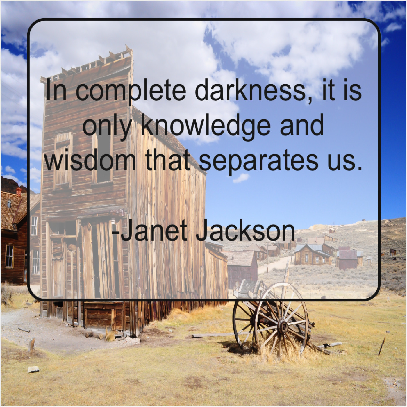 Janet Jackson Janet Jackson – In complete darkness, it is… August 26, 2019 admin “In complete darkness, it is only knowledge and wisdom that separates us.”-Janet Jackson