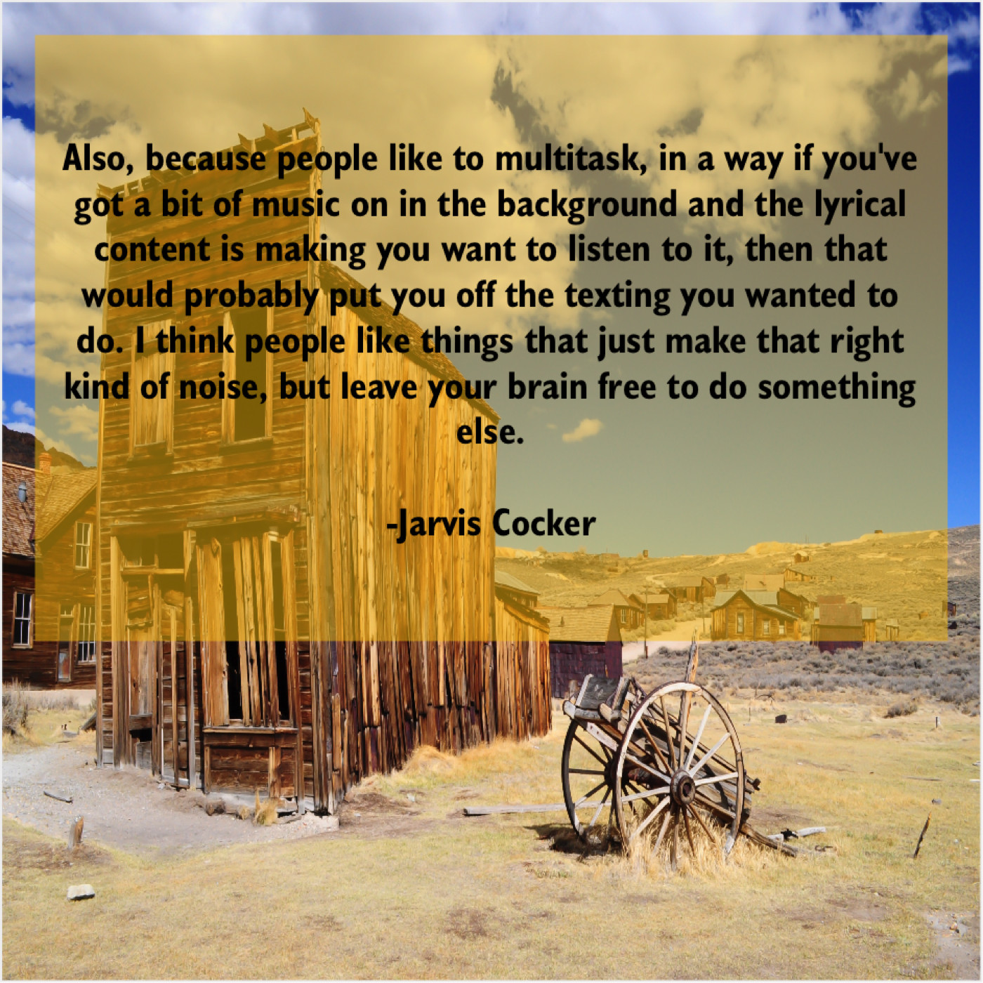 “Also, because people like to multitask, in a way if you’ve got a bit of music on in the background and the lyrical content is making you want to listen to it, then that would probably put you off the texting you wanted to do. I think people like things that just make that right kind of noise, but leave your brain free to do something else.”
