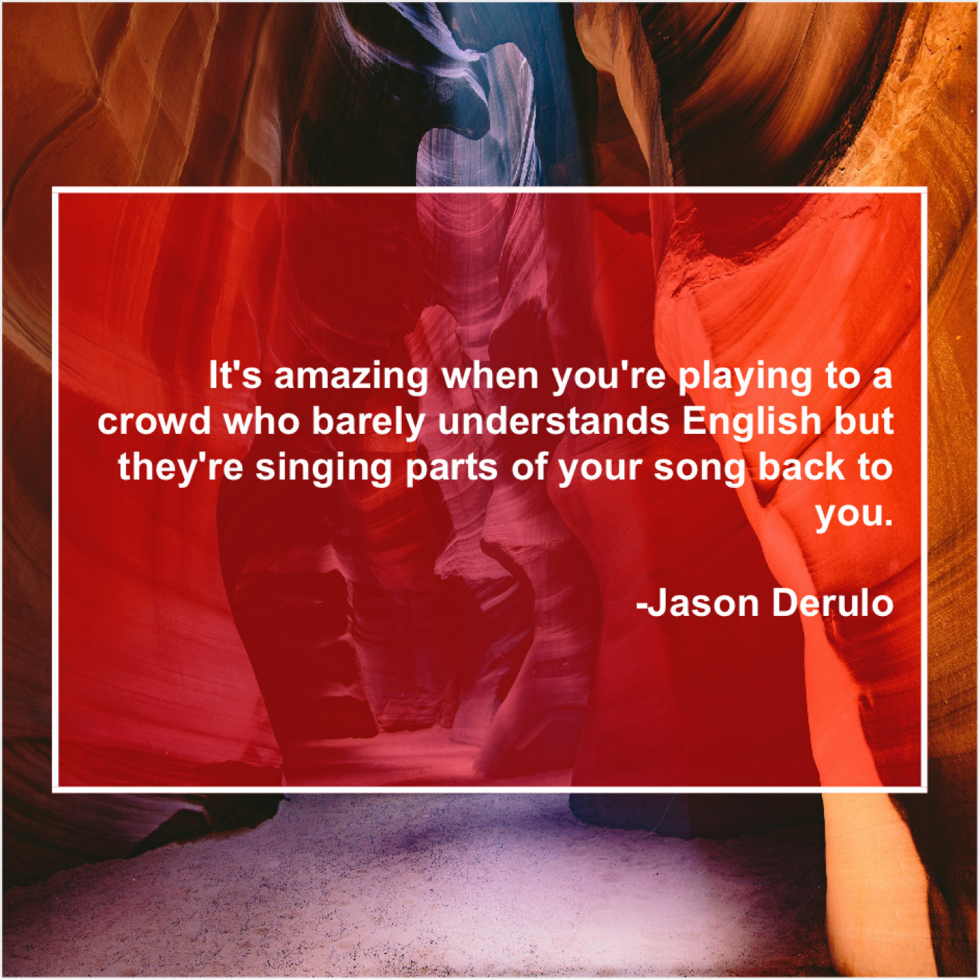 Jason Derulo Jason Derulo – It’s amazing when you’re playing… October 31, 2018 admin “It’s amazing when you’re playing to a crowd who barely understands English but they’re singing parts of your song back to you.”-Jason Derulo