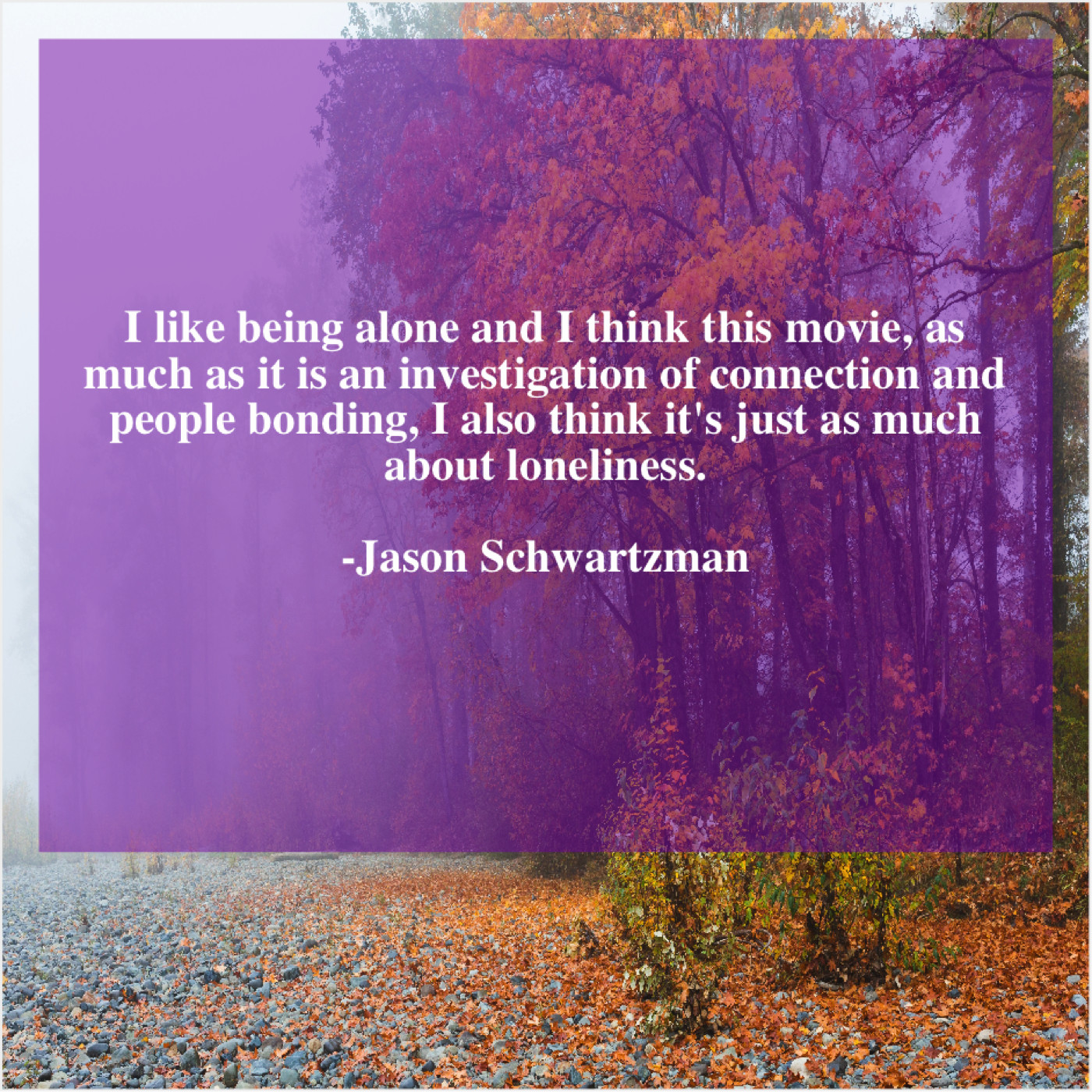Jason Schwartzman Jason Schwartzman – I like being alone and… September 13, 2019 admin “I like being alone and I think this movie, as much as it is an investigation of connection and people bonding, I also think it’s just as much about loneliness.”-Jason Schwartzman