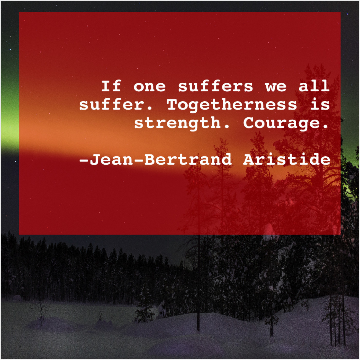 Jean-Bertrand Aristide Jean-Bertrand Aristide – If one suffers we all… April 11, 2019 admin “If one suffers we all suffer. Togetherness is strength. Courage.”-Jean-Bertrand Aristide