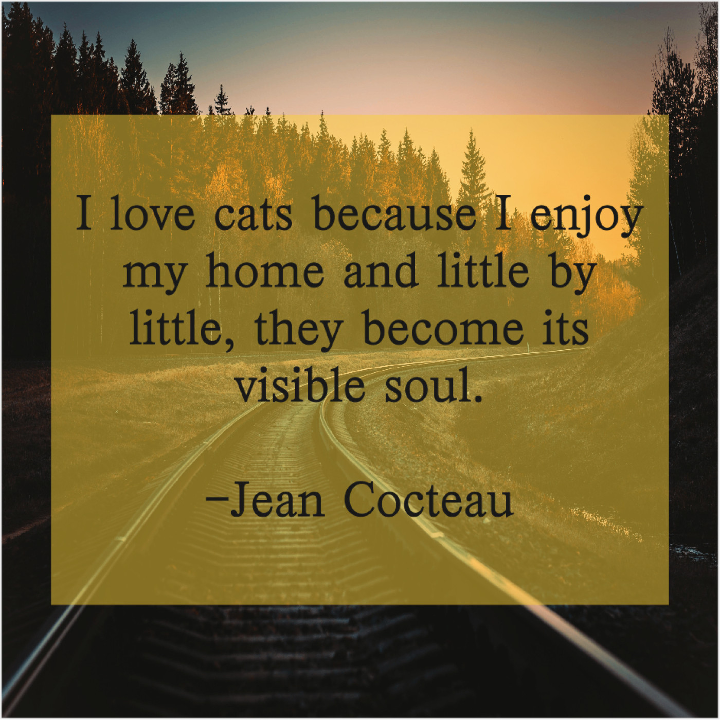 Jean Cocteau Jean Cocteau – I love cats because I… June 14, 2019 admin “I love cats because I enjoy my home and little by little, they become its visible soul.”-Jean Cocteau