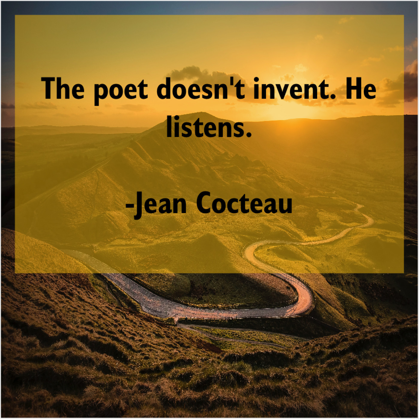 Jean Cocteau Jean Cocteau – The poet doesn’t invent. He… September 19, 2019 admin “The poet doesn’t invent. He listens.”-Jean Cocteau