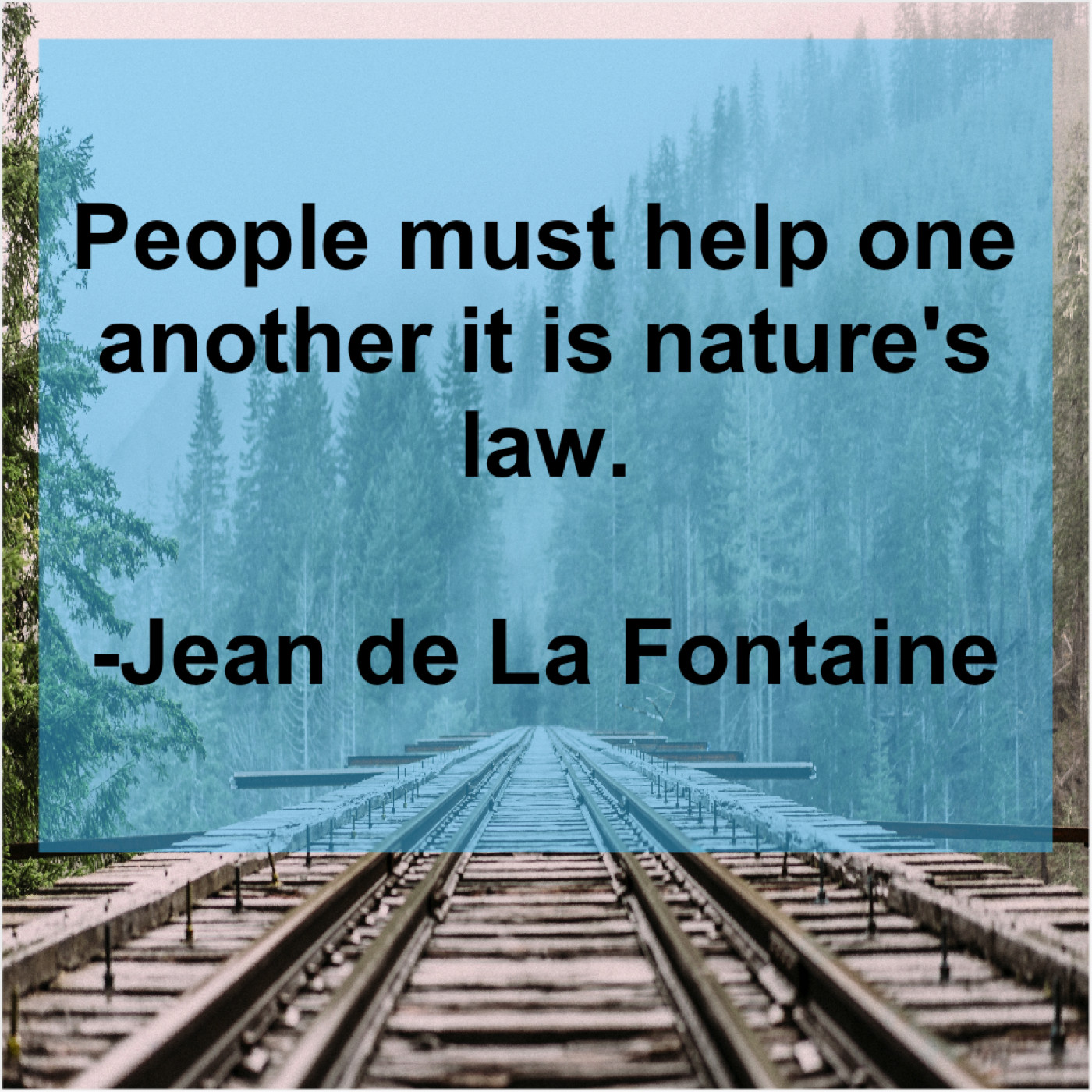 Jean de La Fontaine Jean de La Fontaine – People must help one another… February 18, 2019 admin “People must help one another it is nature’s law.”-Jean de La Fontaine