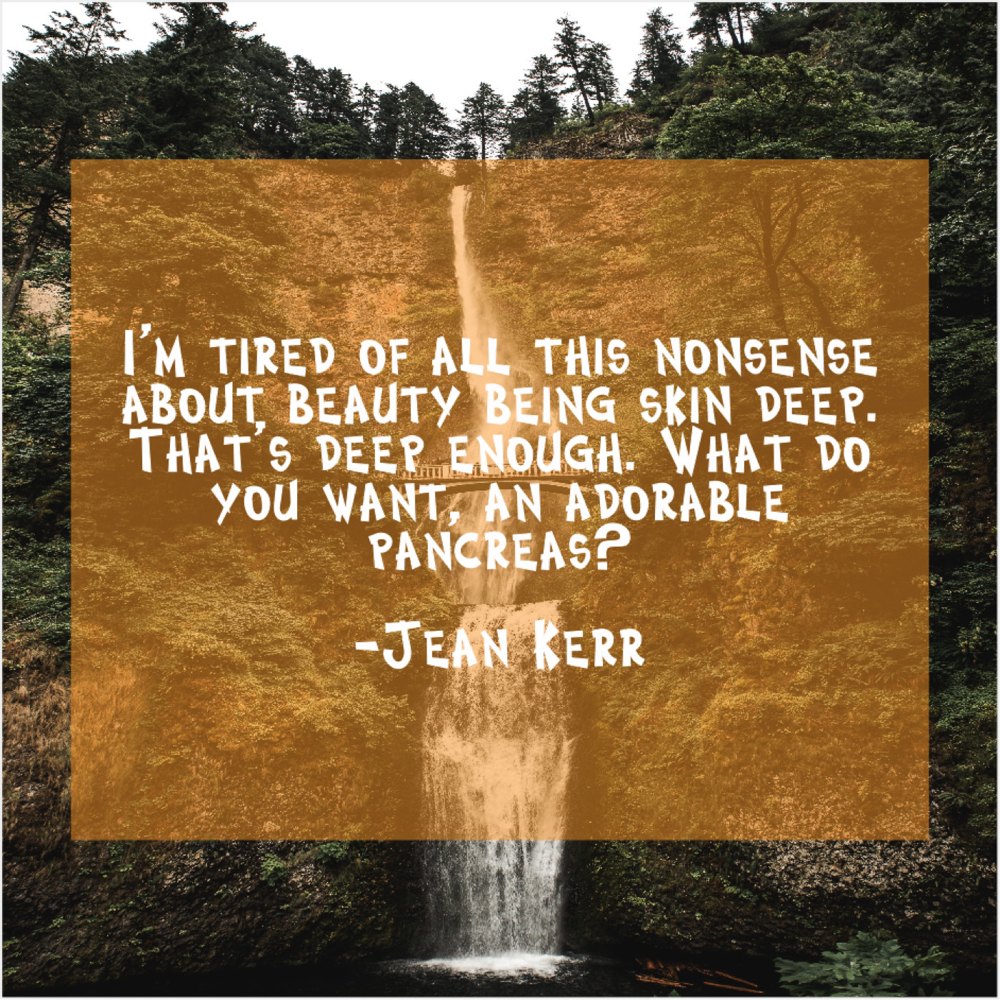 Jean Kerr Jean Kerr – I’m tired of all this… November 22, 2018 admin “I’m tired of all this nonsense about beauty being skin deep. That’s deep enough. What do you want, an adorable pancreas?”-Jean Kerr
