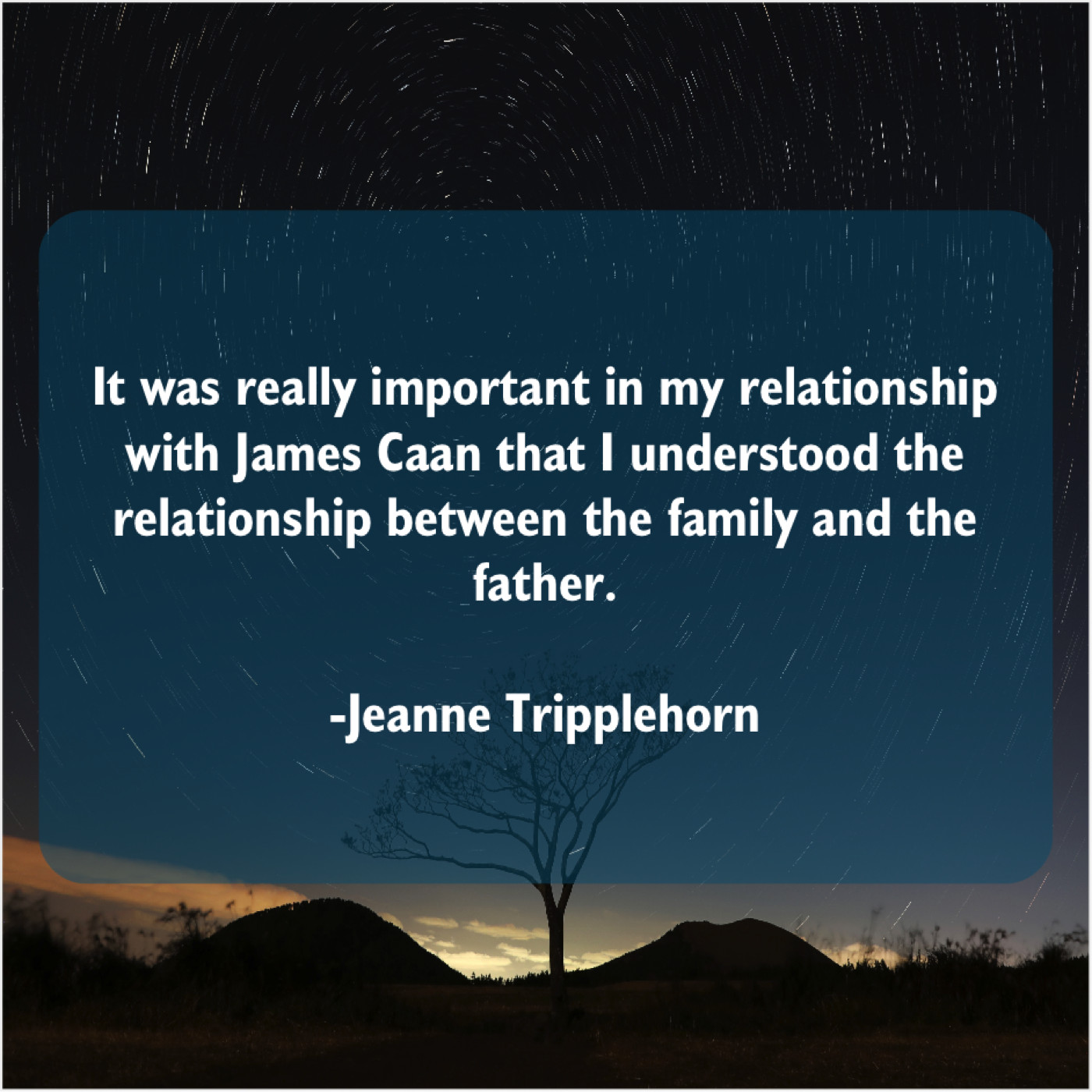 Jeanne Tripplehorn Jeanne Tripplehorn – It was really important in… July 21, 2019 admin “It was really important in my relationship with James Caan that I understood the relationship between the family and the father.”-Jeanne Tripplehorn