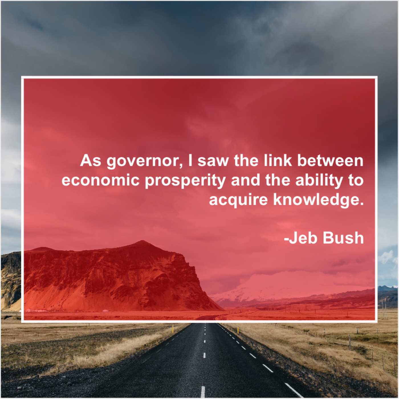 Jeb Bush Jeb Bush – As governor, I saw the… September 12, 2019 admin “As governor, I saw the link between economic prosperity and the ability to acquire knowledge.”-Jeb Bush
