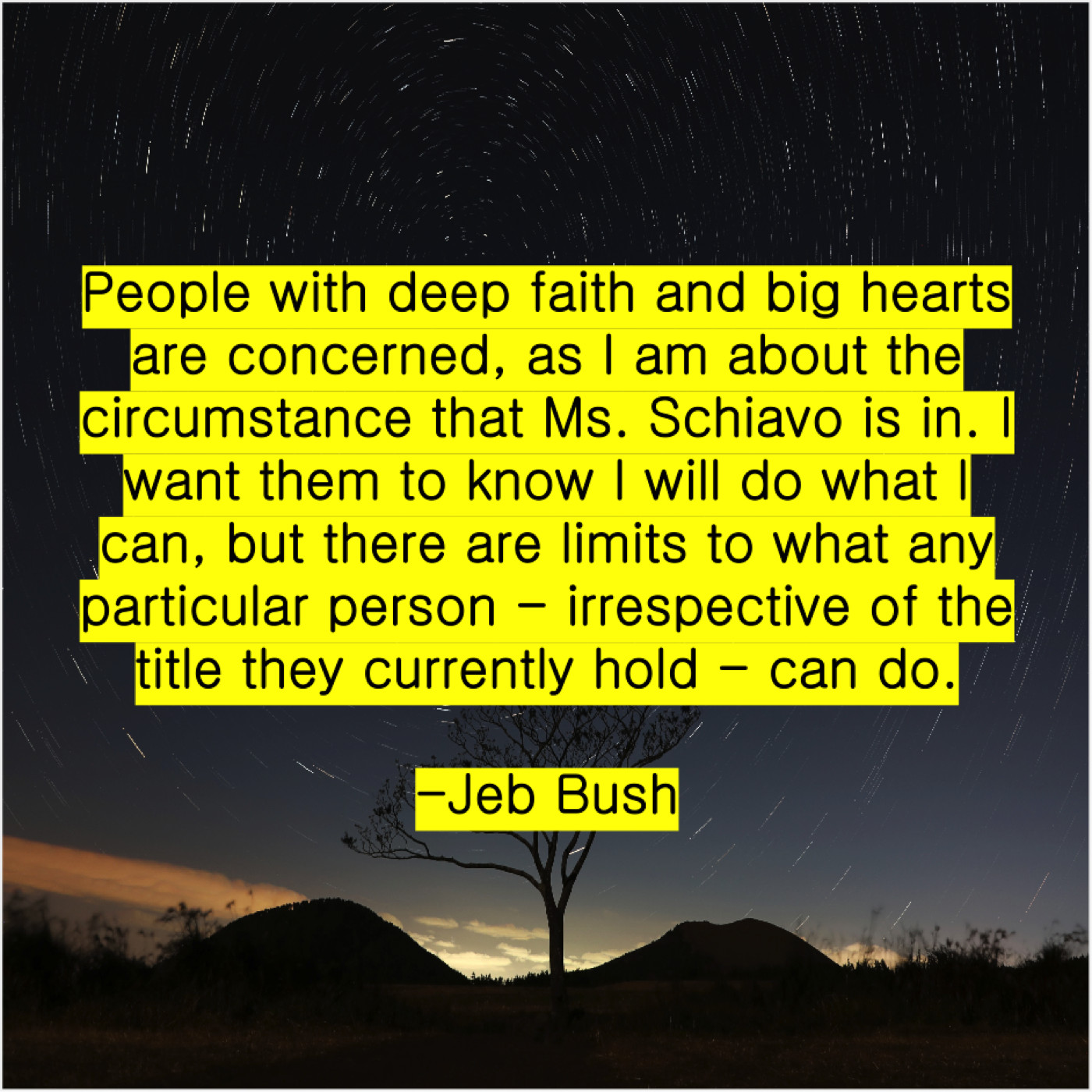 “People with deep faith and big hearts are concerned, as I am about the circumstance that Ms. Schiavo is in. I want them to know I will do what I can, but there are limits to what any particular person – irrespective of the title they currently hold – can do.”
