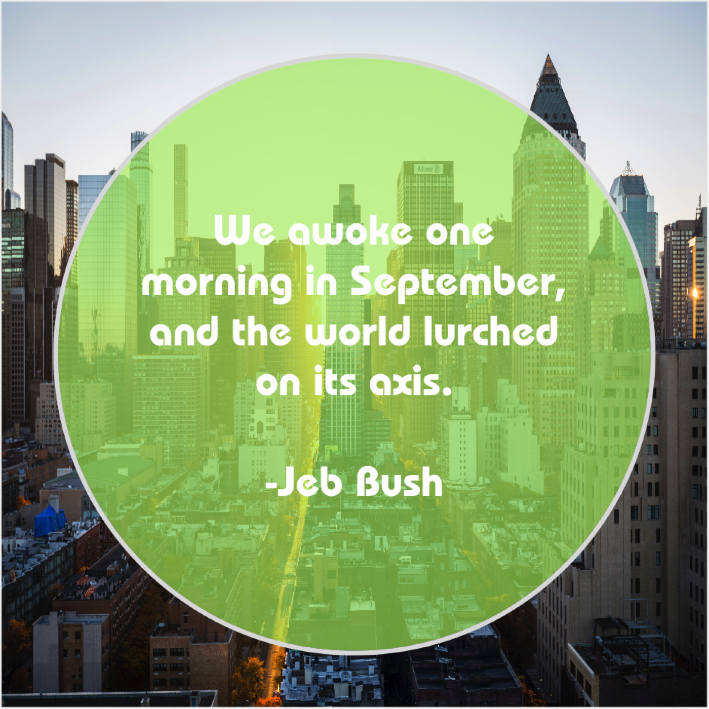 Jeb Bush Jeb Bush – We awoke one morning in… June 19, 2019 admin “We awoke one morning in September, and the world lurched on its axis.”-Jeb Bush