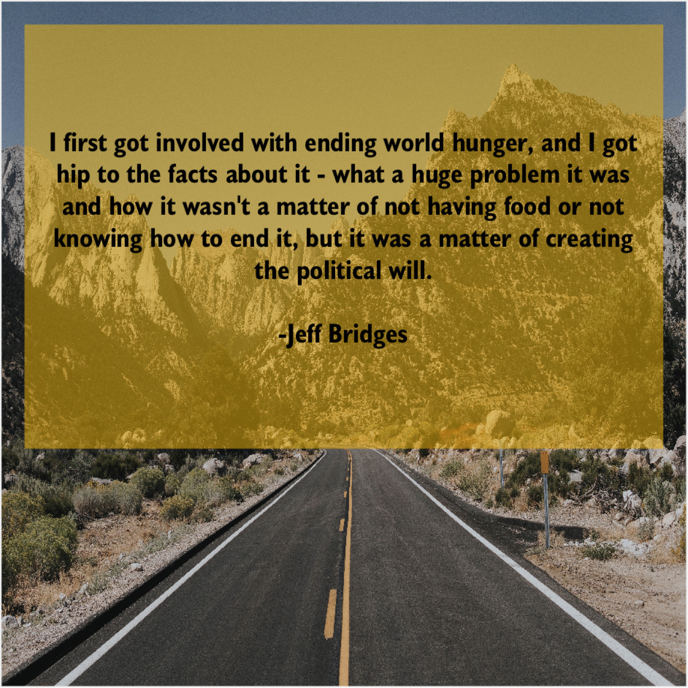 “I first got involved with ending world hunger, and I got hip to the facts about it – what a huge problem it was and how it wasn’t a matter of not having food or not knowing how to end it, but it was a matter of creating the political will.”