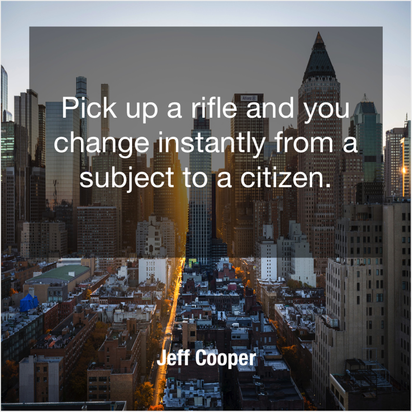 Jeff Cooper Jeff Cooper – Pick up a rifle and… February 1, 2019 admin “Pick up a rifle and you change instantly from a subject to a citizen.”-Jeff Cooper