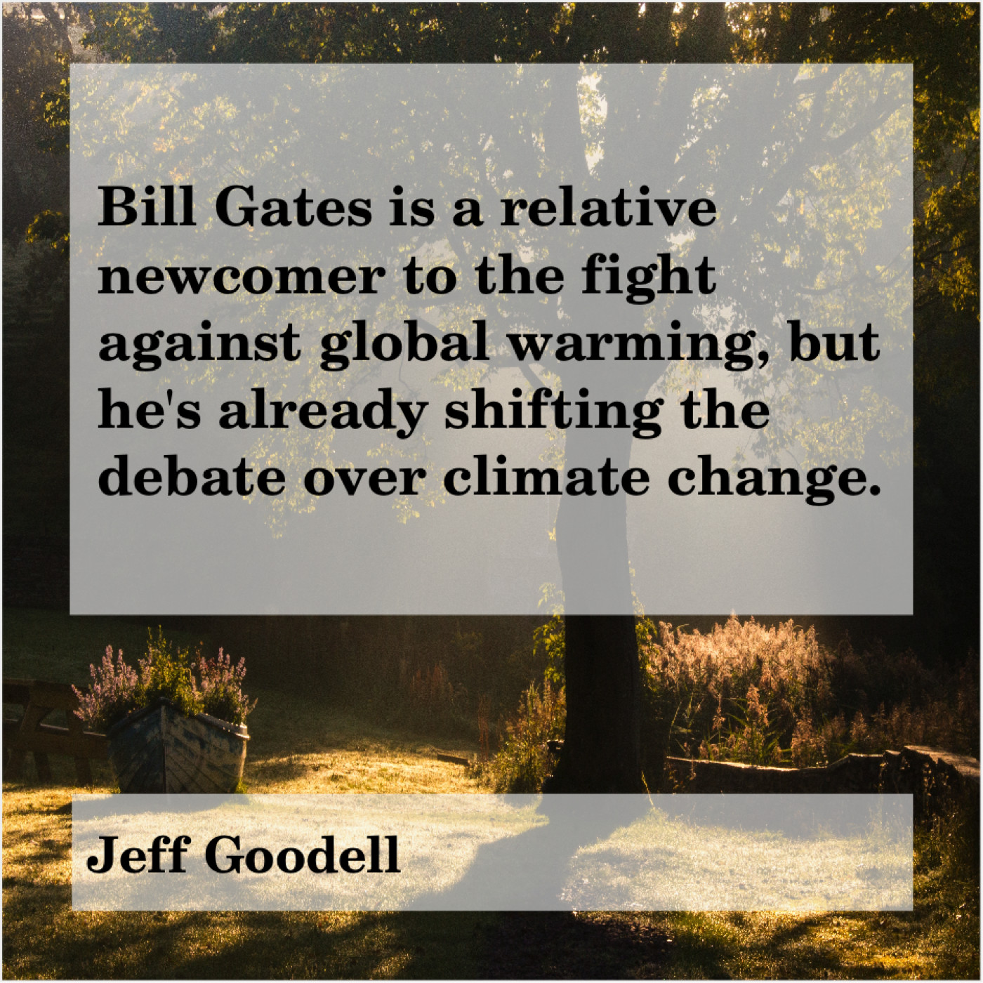 Jeff Goodell Jeff Goodell – Bill Gates is a relative… July 25, 2019 admin “Bill Gates is a relative newcomer to the fight against global warming, but he’s already shifting the debate over climate change.”-Jeff Goodell