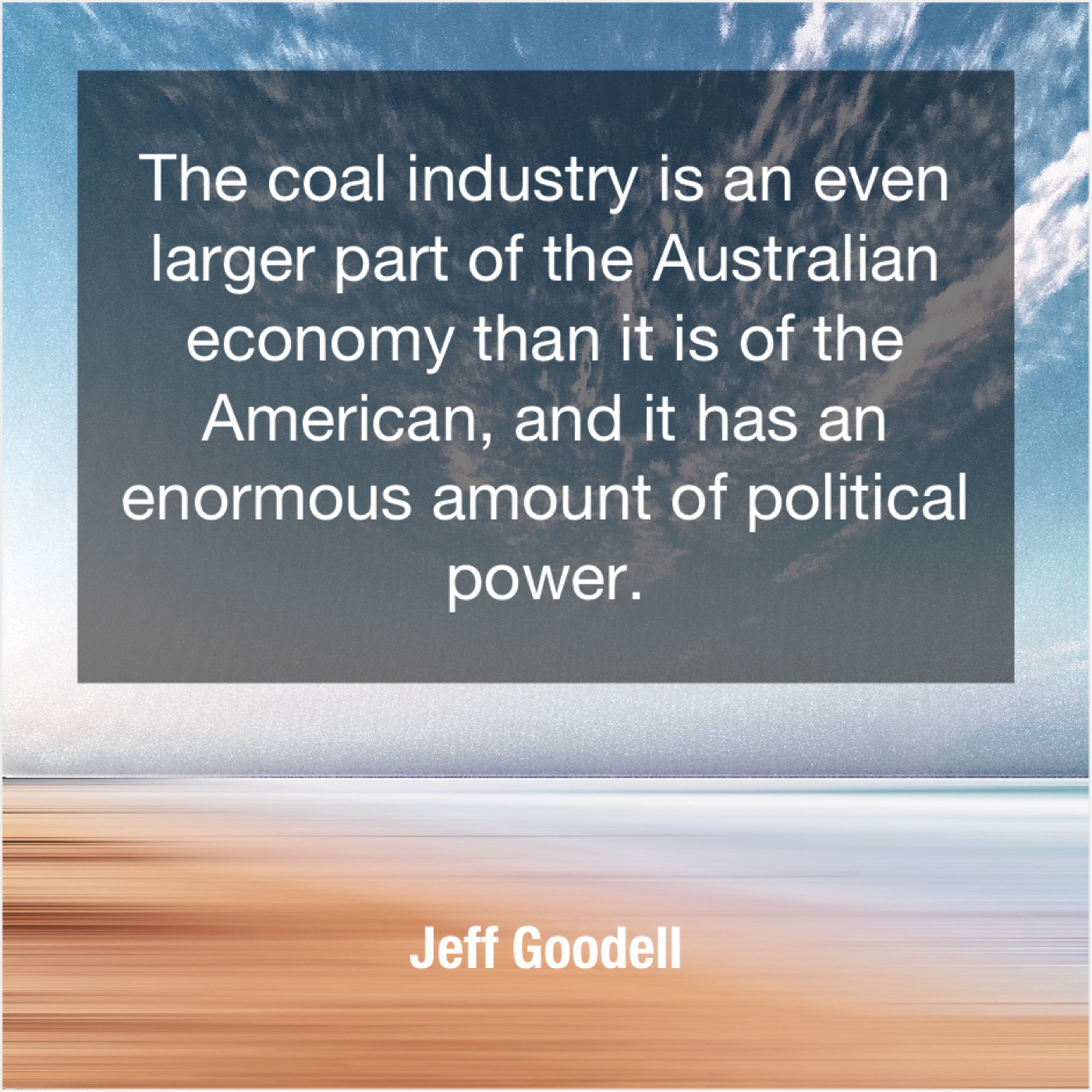 Jeff Goodell Jeff Goodell – The coal industry is an… June 9, 2019 admin “The coal industry is an even larger part of the Australian economy than it is of the American, and it has an enormous amount of political power.”-Jeff Goodell