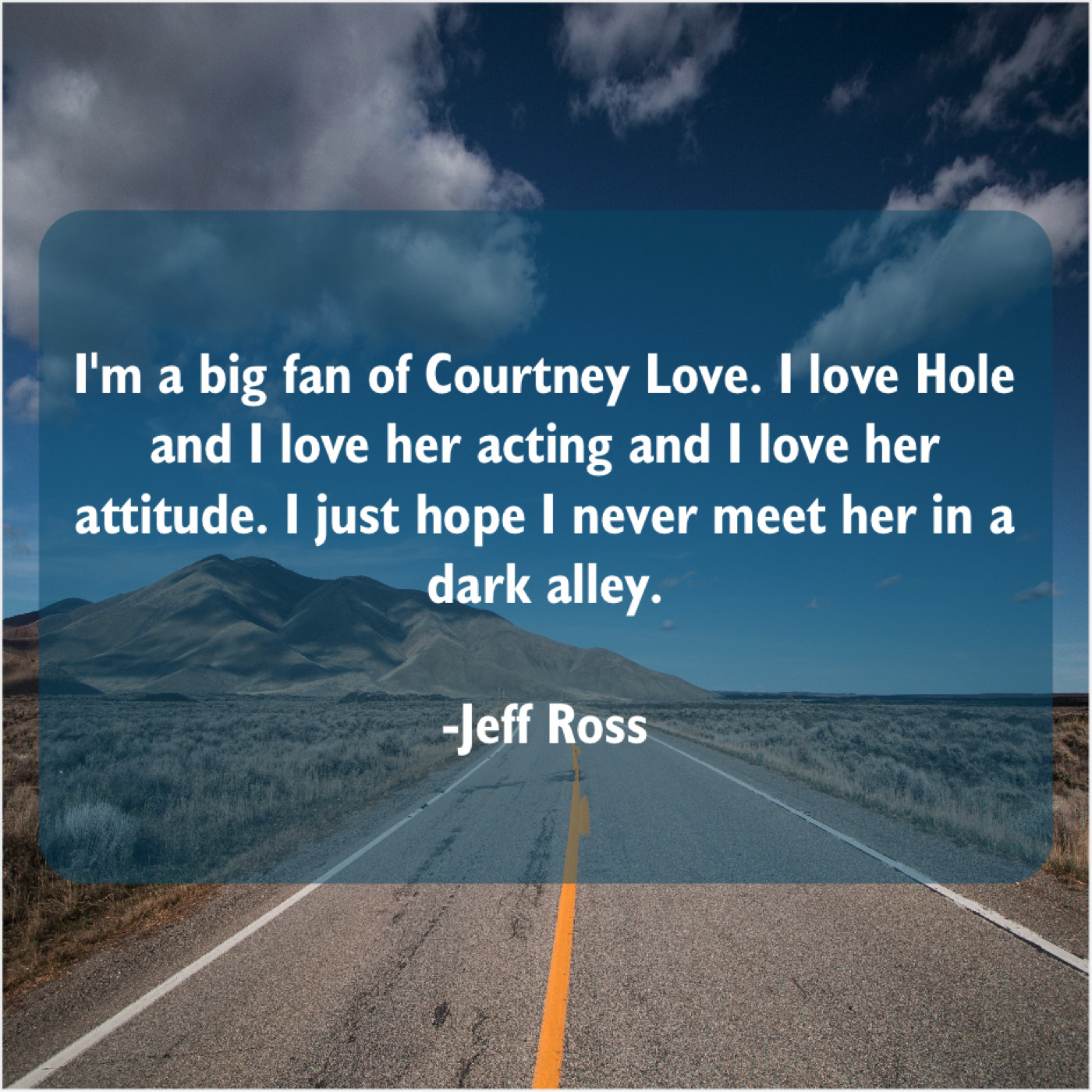 Jeff Ross Jeff Ross – I’m a big fan of… December 13, 2018 admin “I’m a big fan of Courtney Love. I love Hole and I love her acting and I love her attitude. I just hope I never meet her in a dark alley.”-Jeff Ross