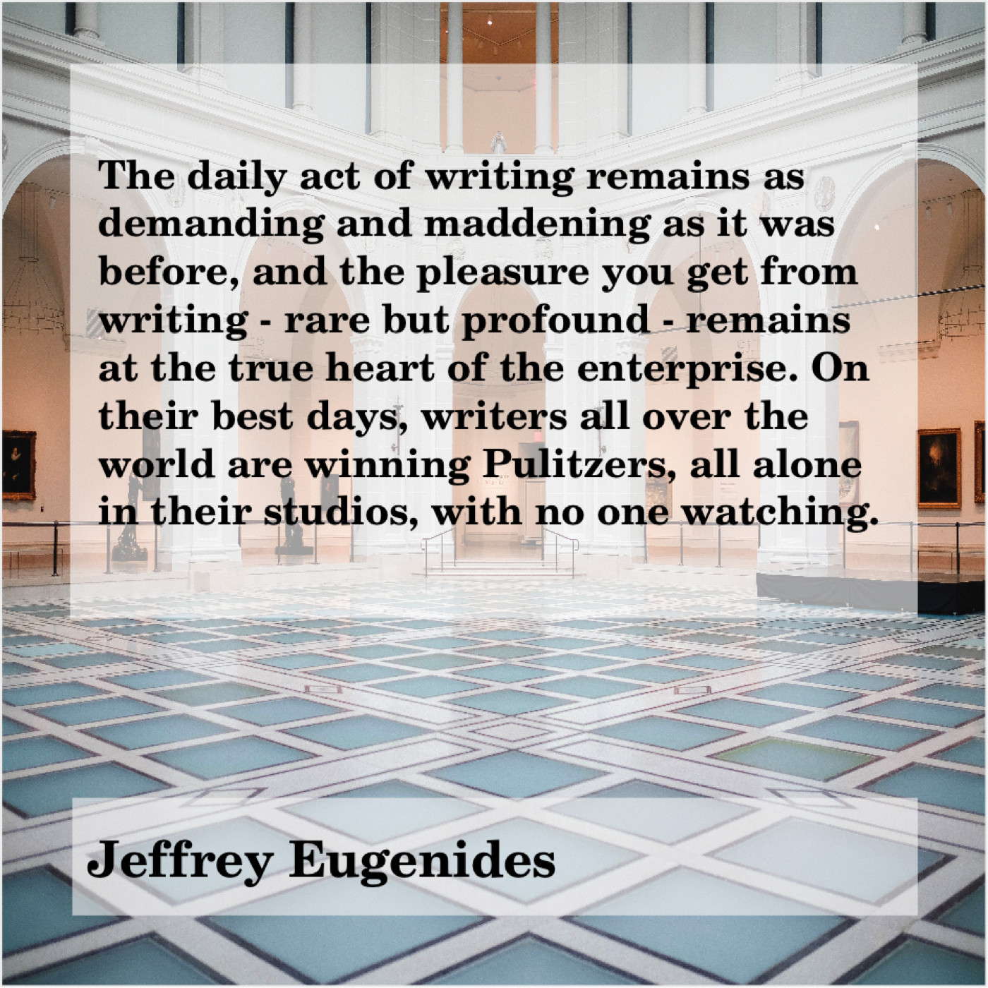 “The daily act of writing remains as demanding and maddening as it was before, and the pleasure you get from writing – rare but profound – remains at the true heart of the enterprise. On their best days, writers all over the world are winning Pulitzers, all alone in their studios, with no one watching.”