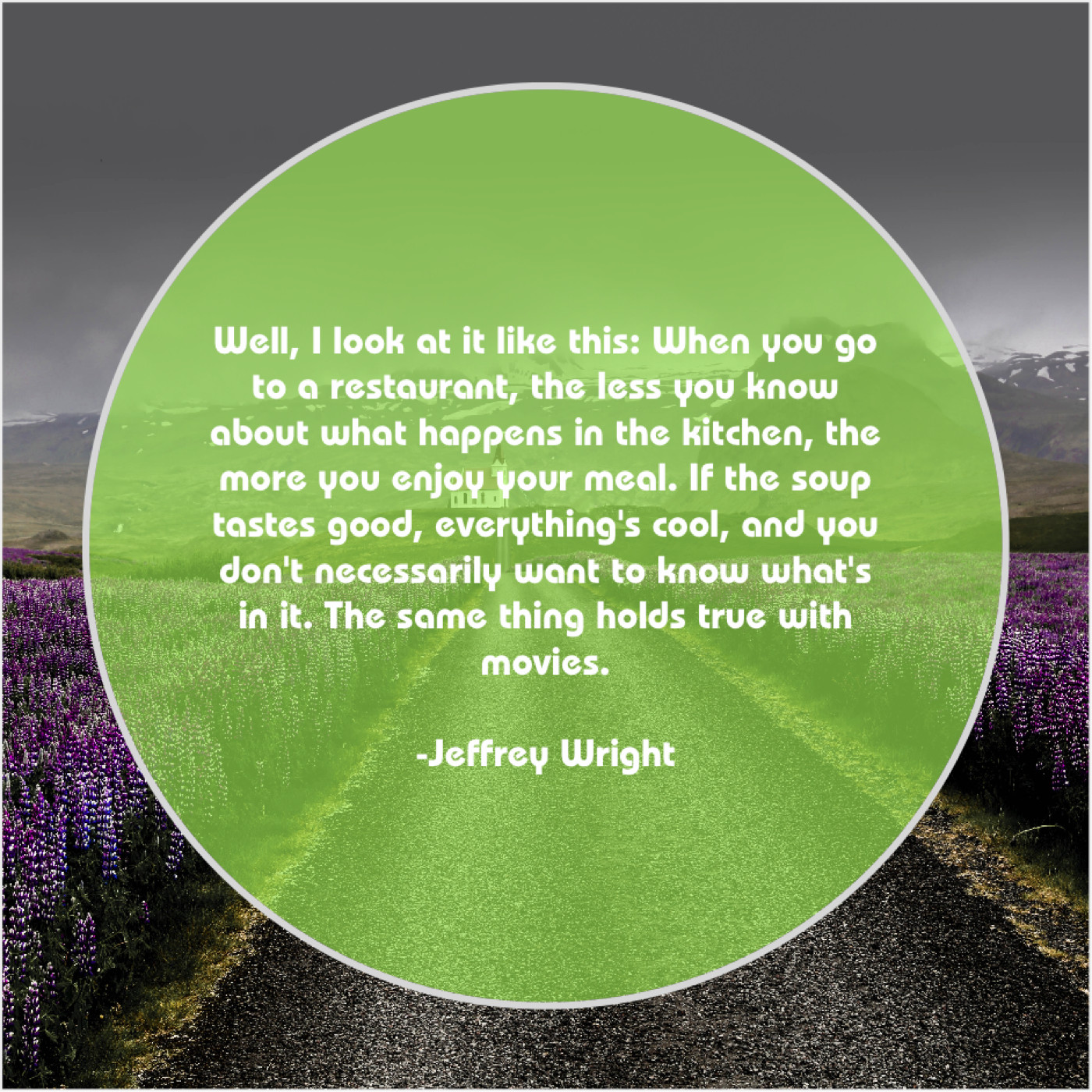 “Well, I look at it like this: When you go to a restaurant, the less you know about what happens in the kitchen, the more you enjoy your meal. If the soup tastes good, everything’s cool, and you don’t necessarily want to know what’s in it. The same thing holds true with movies.”