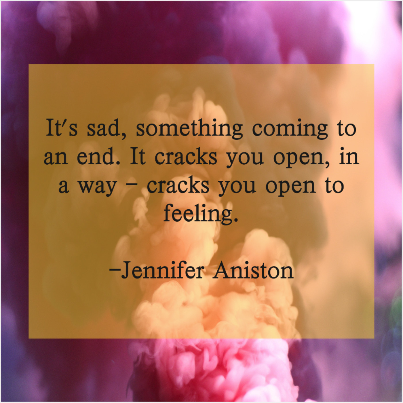 Jennifer Aniston Jennifer Aniston – It’s sad, something coming to… July 1, 2019 admin “It’s sad, something coming to an end. It cracks you open, in a way – cracks you open to feeling.”-Jennifer Aniston