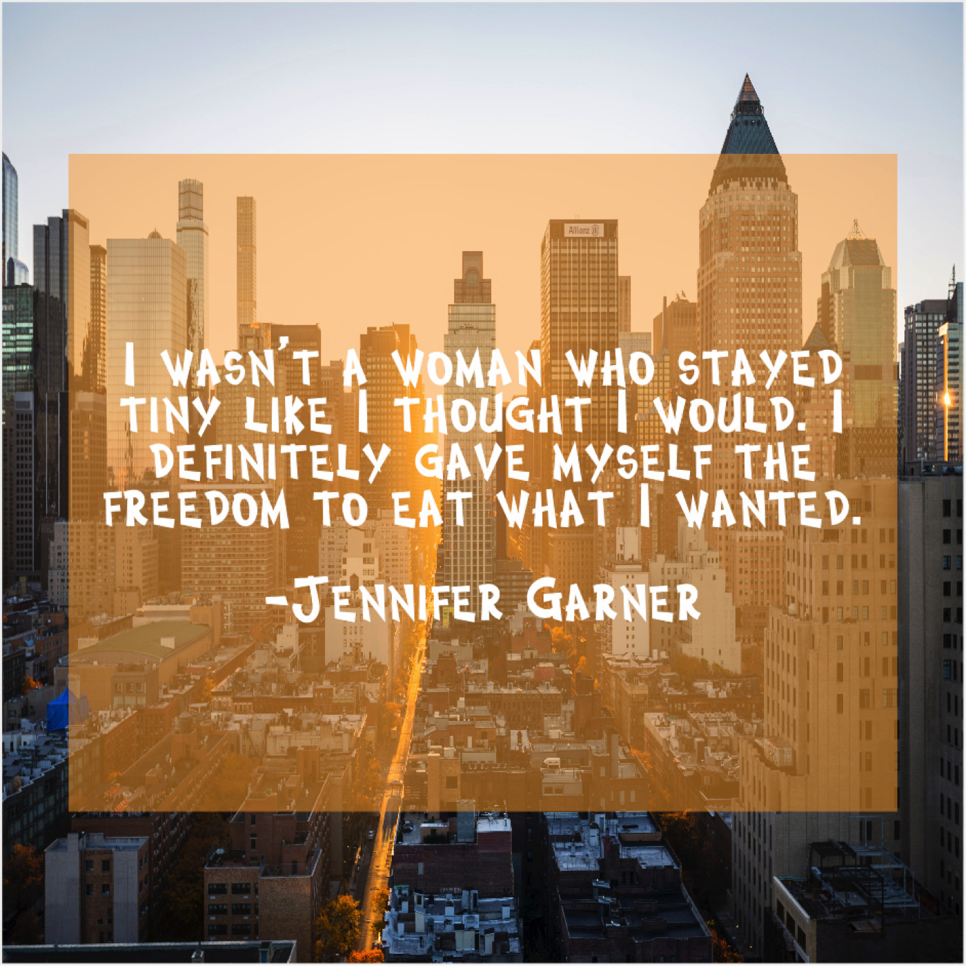 Jennifer Garner Jennifer Garner – I wasn’t a woman who… June 8, 2019 admin “I wasn’t a woman who stayed tiny like I thought I would. I definitely gave myself the freedom to eat what I wanted.”-Jennifer Garner