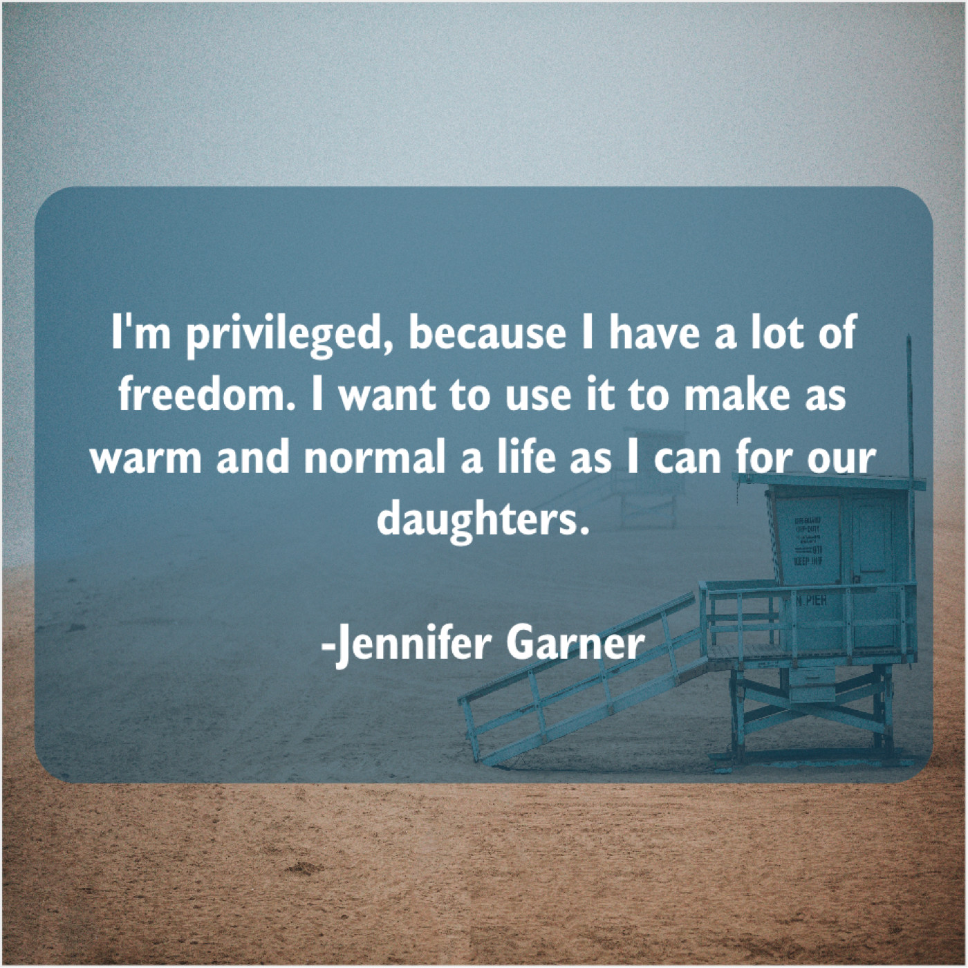 Jennifer Garner Jennifer Garner – I’m privileged, because I have… January 3, 2019 admin “I’m privileged, because I have a lot of freedom. I want to use it to make as warm and normal a life as I can for our daughters.”-Jennifer Garner