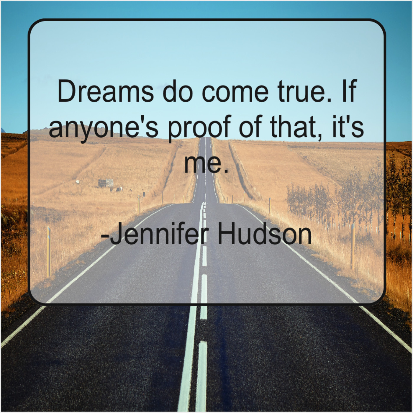 Jennifer Hudson Jennifer Hudson – Dreams do come true. If… September 5, 2019 admin “Dreams do come true. If anyone’s proof of that, it’s me.”-Jennifer Hudson