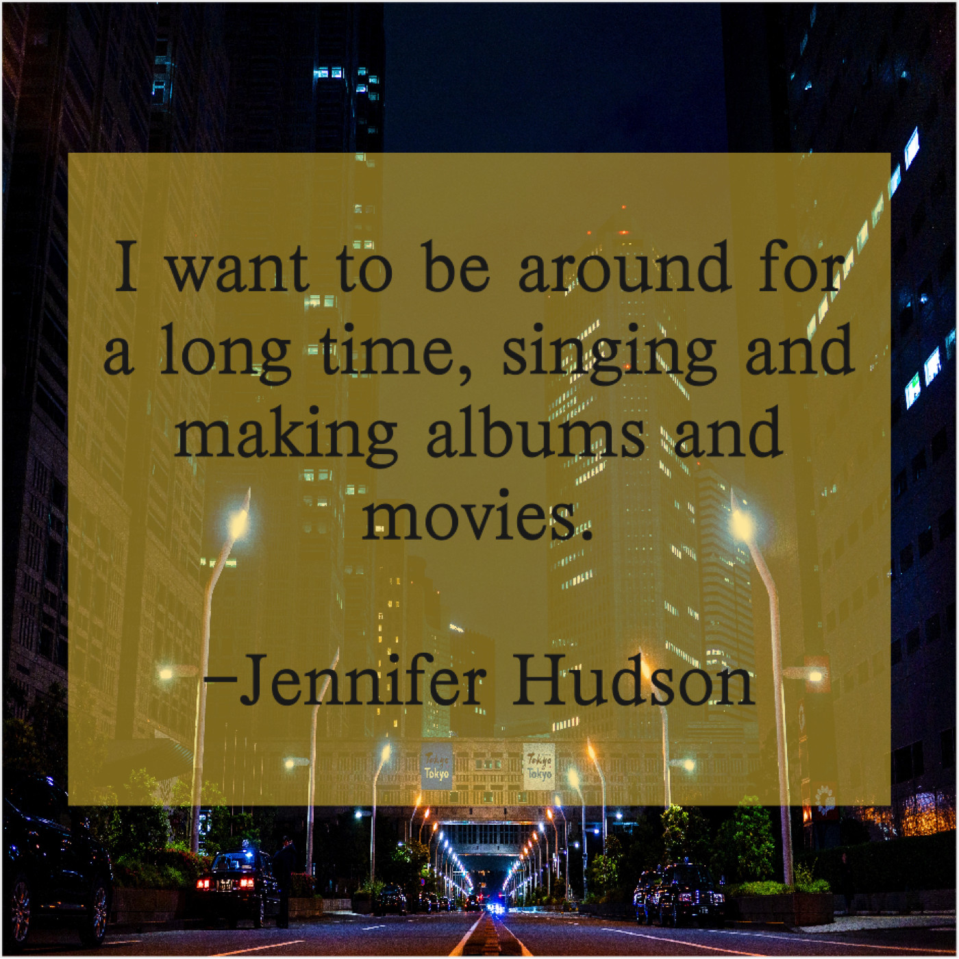 Jennifer Hudson Jennifer Hudson – I want to be around… December 30, 2018 admin “I want to be around for a long time, singing and making albums and movies.”-Jennifer Hudson
