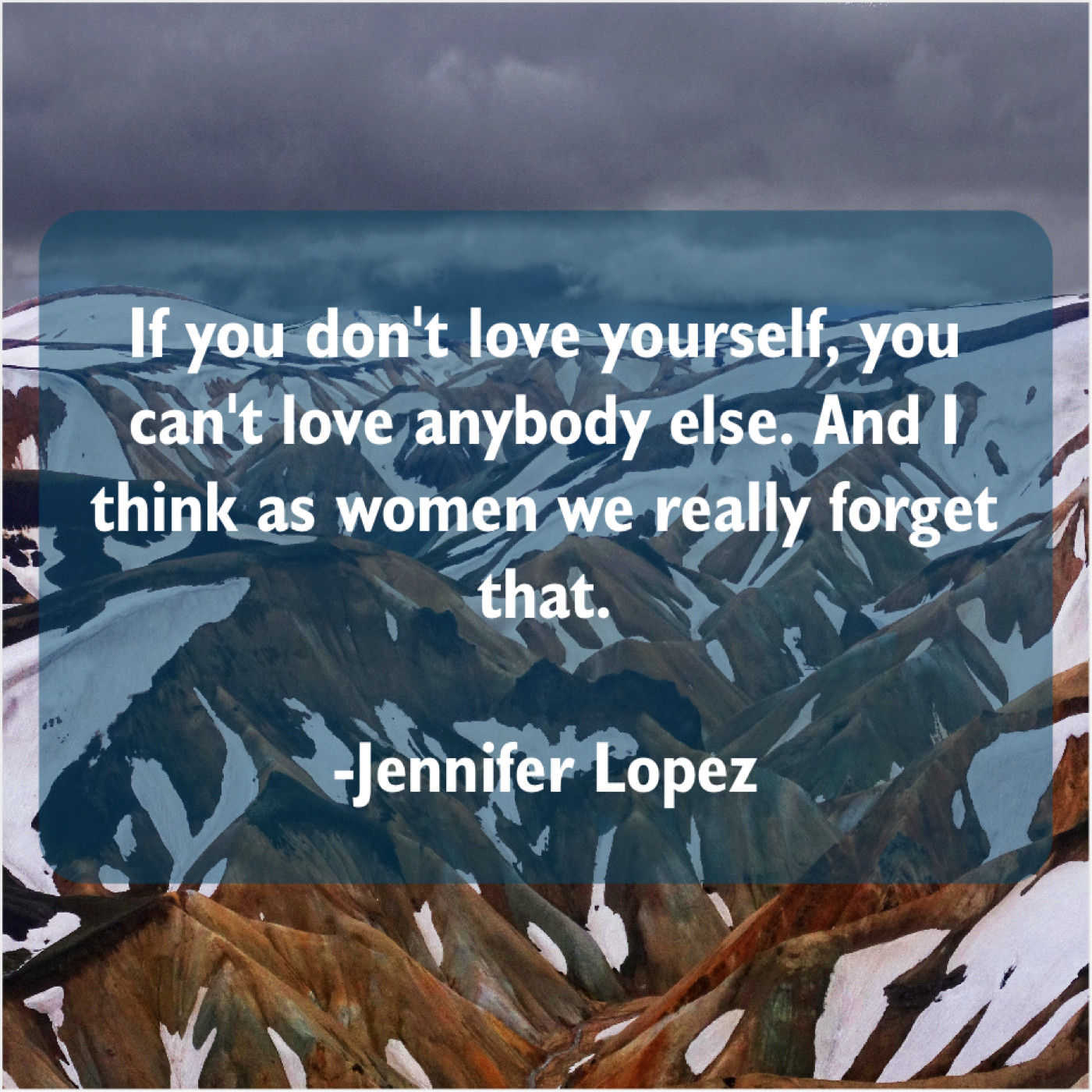Jennifer Lopez Jennifer Lopez – If you don’t love yourself… October 14, 2019 admin “If you don’t love yourself, you can’t love anybody else. And I think as women we really forget that.”-Jennifer Lopez