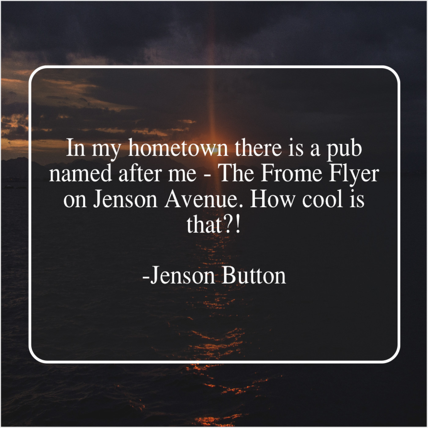 Jenson Button Jenson Button – In my hometown there is… December 14, 2018 admin “In my hometown there is a pub named after me – The Frome Flyer on Jenson Avenue. How cool is that?!”-Jenson Button