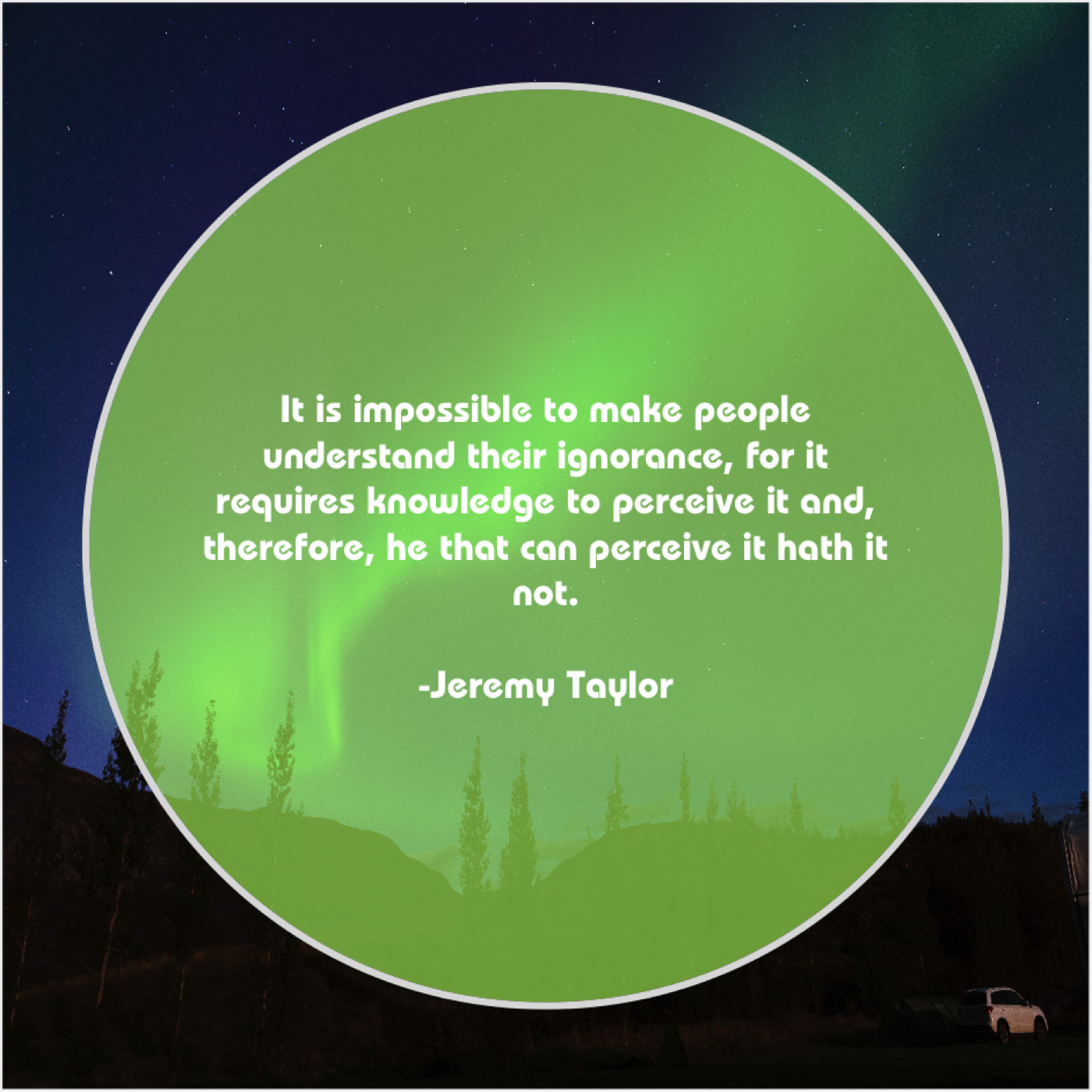 Jeremy Taylor Jeremy Taylor – It is impossible to make… July 2, 2019 admin “It is impossible to make people understand their ignorance, for it requires knowledge to perceive it and, therefore, he that can perceive it hath it not.”-Jeremy Taylor
