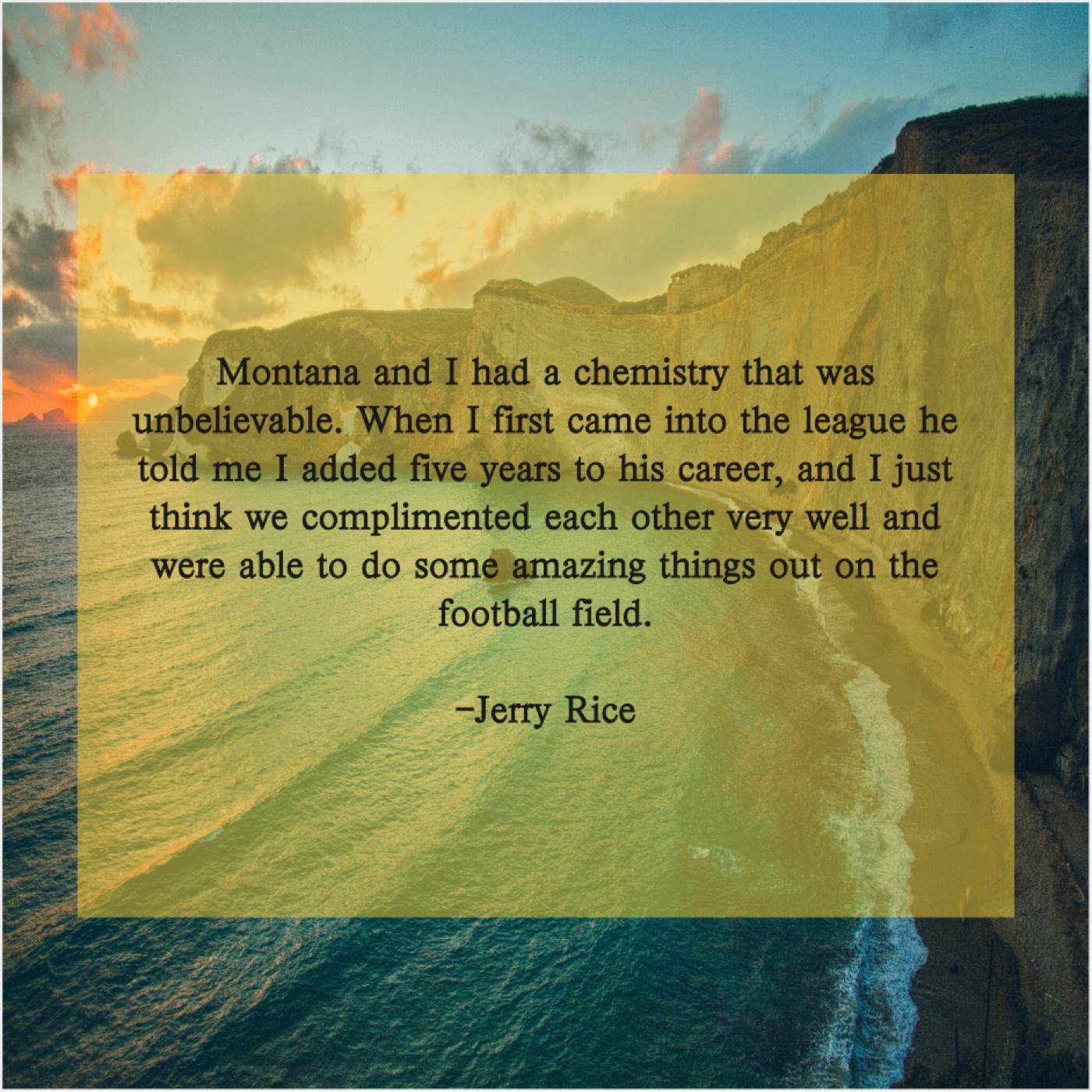 “Montana and I had a chemistry that was unbelievable. When I first came into the league he told me I added five years to his career, and I just think we complimented each other very well and were able to do some amazing things out on the football field.”
