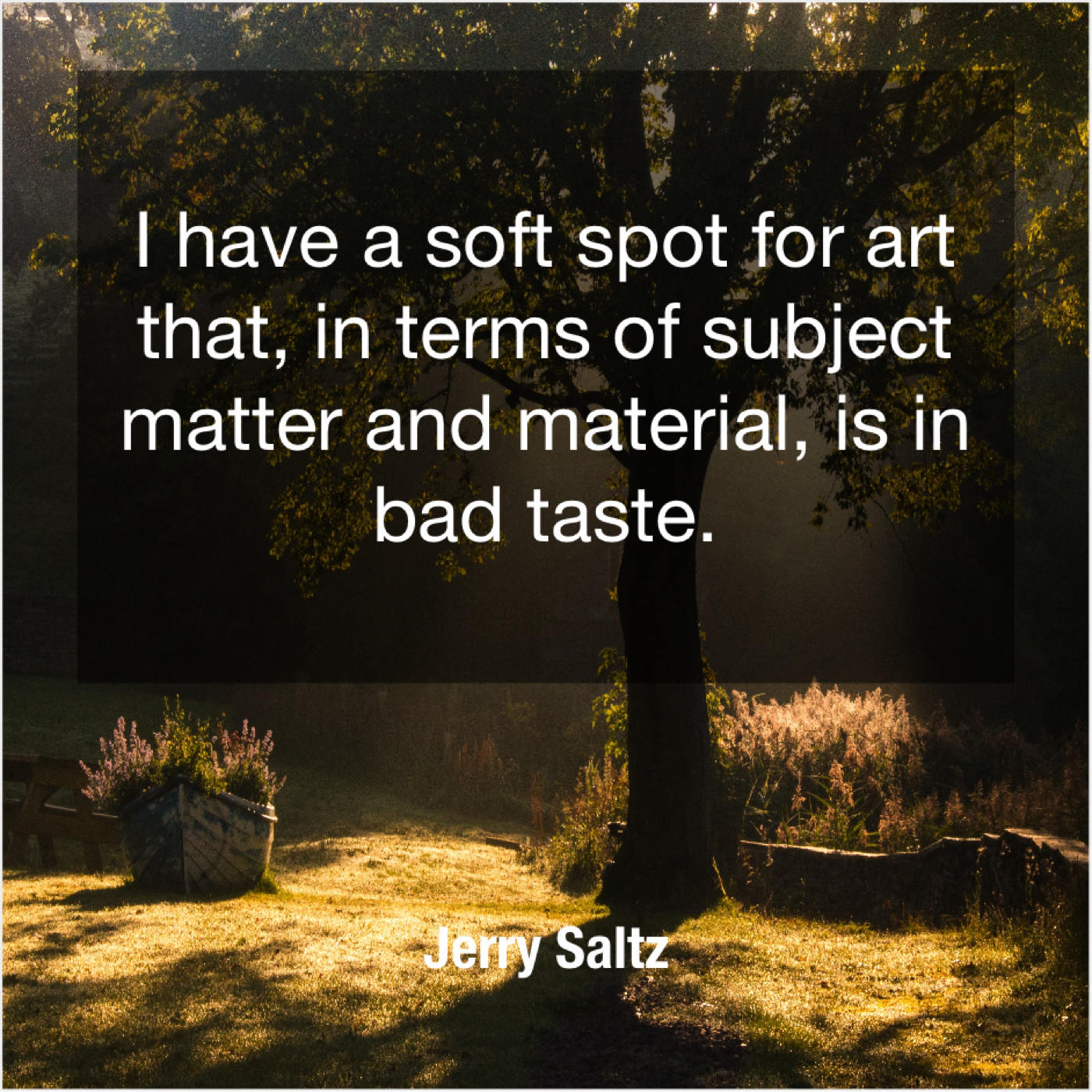 Jerry Saltz Jerry Saltz – I have a soft spot… May 6, 2019 admin “I have a soft spot for art that, in terms of subject matter and material, is in bad taste.”-Jerry Saltz