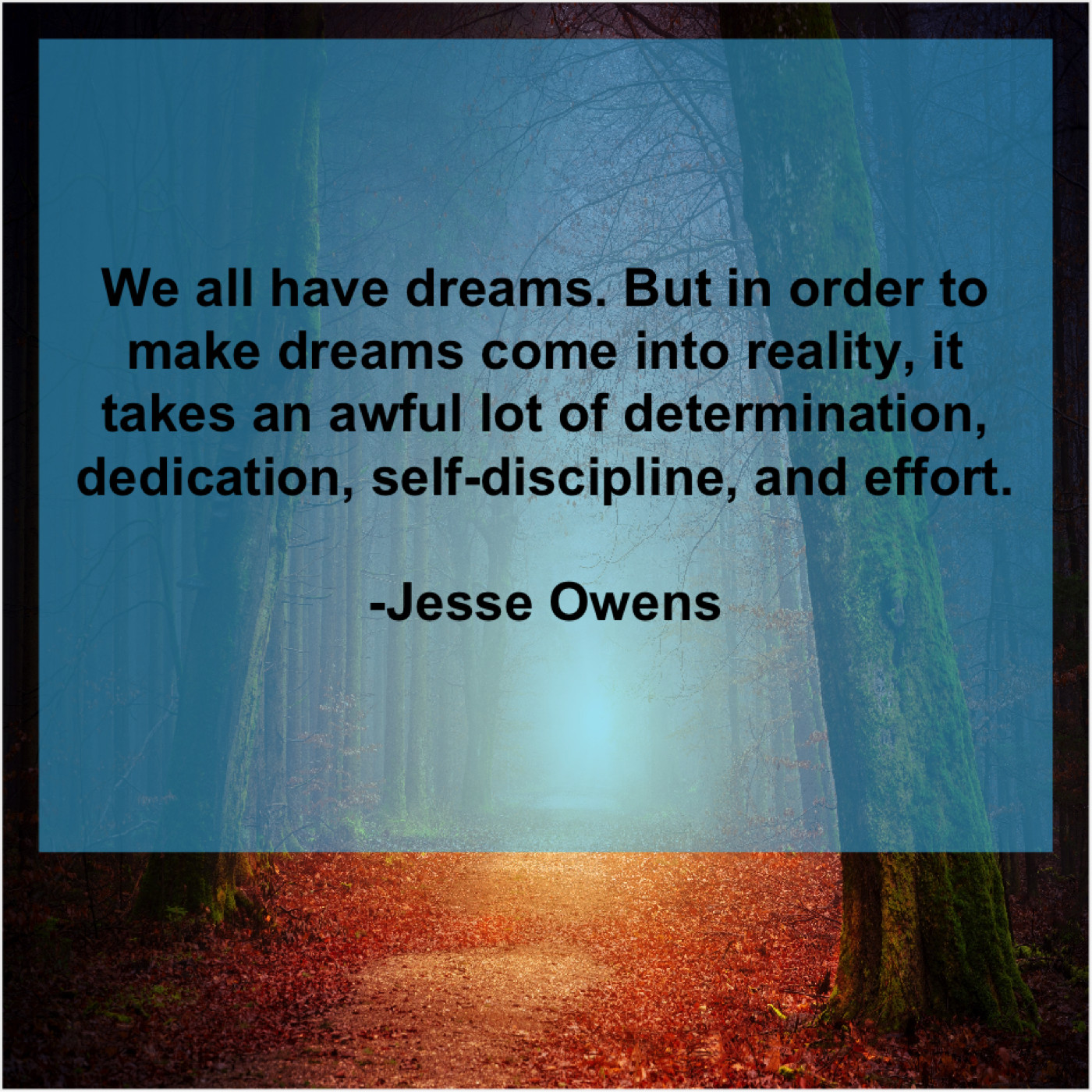 Jesse Owens Jesse Owens – We all have dreams. But… June 2, 2019 admin “We all have dreams. But in order to make dreams come into reality, it takes an awful lot of determination, dedication, self-discipline, and effort.”-Jesse Owens