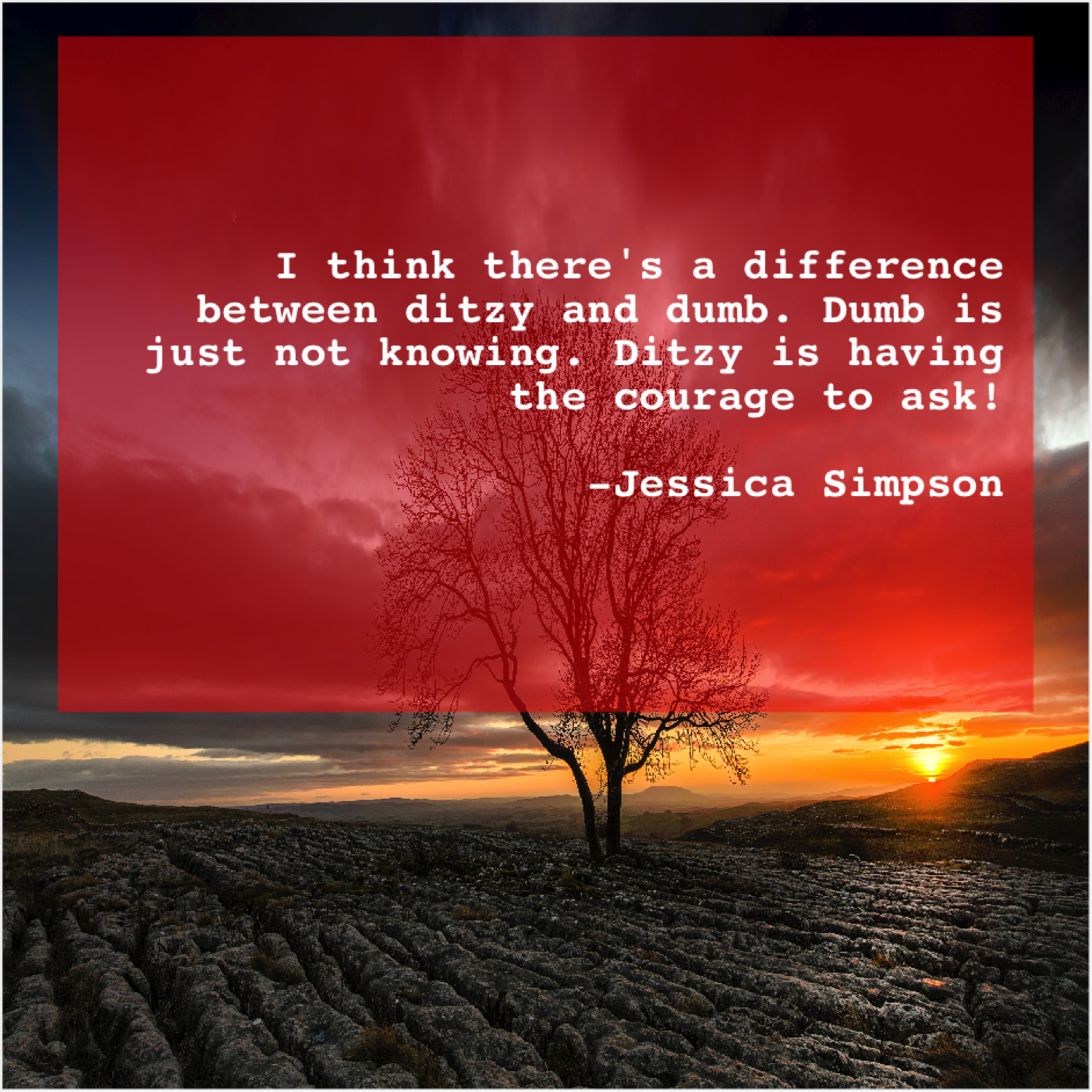 Jessica Simpson Jessica Simpson – I think there’s a difference… August 7, 2019 admin “I think there’s a difference between ditzy and dumb. Dumb is just not knowing. Ditzy is having the courage to ask!”-Jessica Simpson