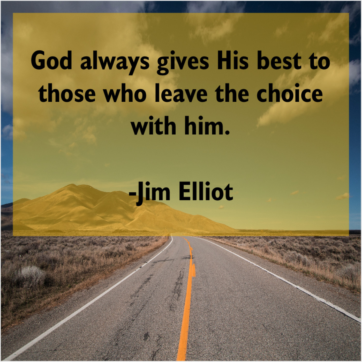 Jim Elliot Jim Elliot – God always gives His best… July 13, 2019 admin “God always gives His best to those who leave the choice with him.”-Jim Elliot