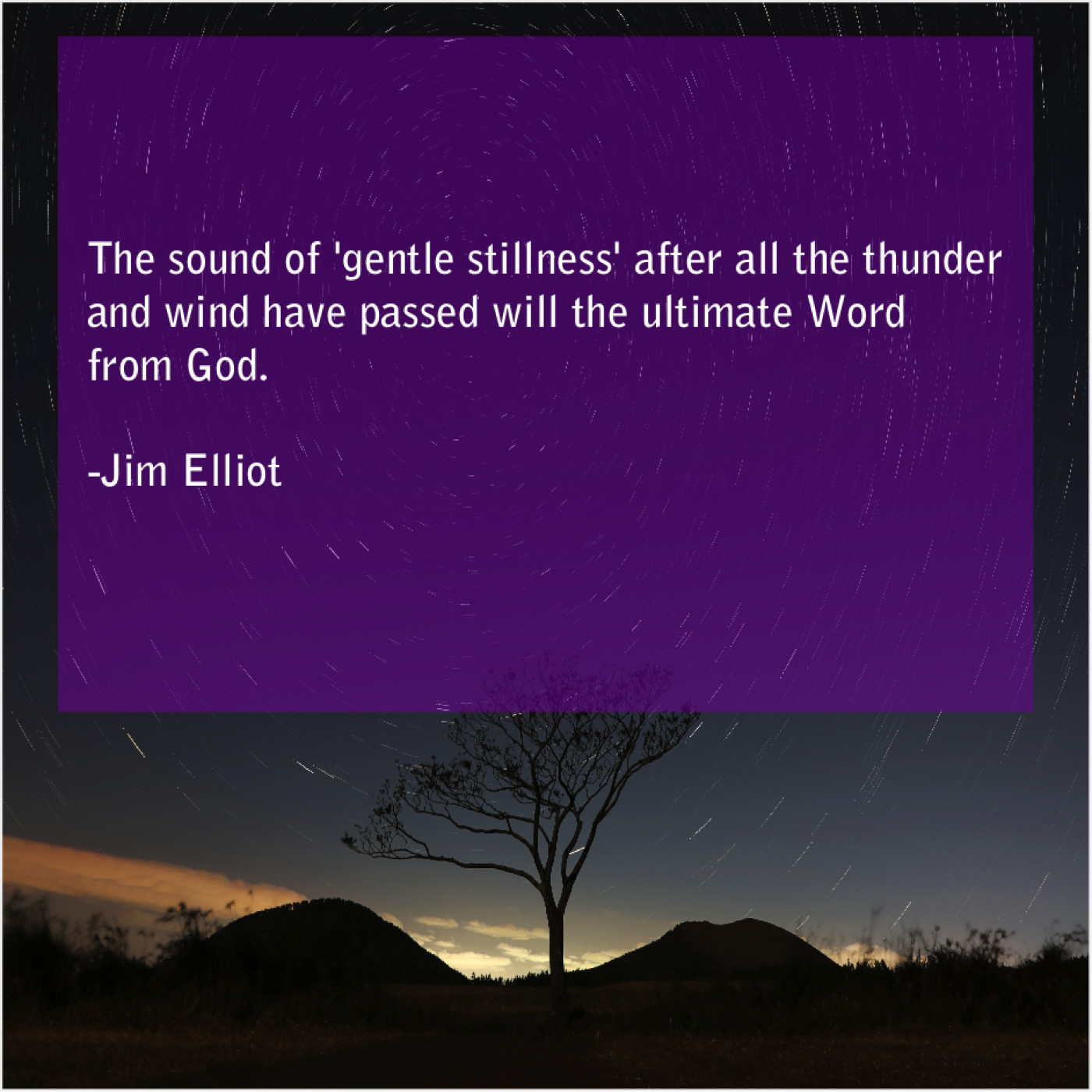 Jim Elliot Jim Elliot – The sound of ‘gentle stillness… September 28, 2019 admin “The sound of ‘gentle stillness’ after all the thunder and wind have passed will the ultimate Word from God.”-Jim Elliot