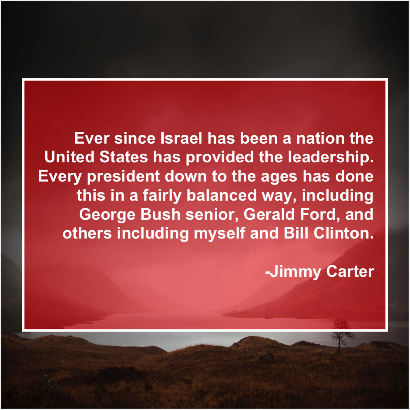 “Ever since Israel has been a nation the United States has provided the leadership. Every president down to the ages has done this in a fairly balanced way, including George Bush senior, Gerald Ford, and others including myself and Bill Clinton.”