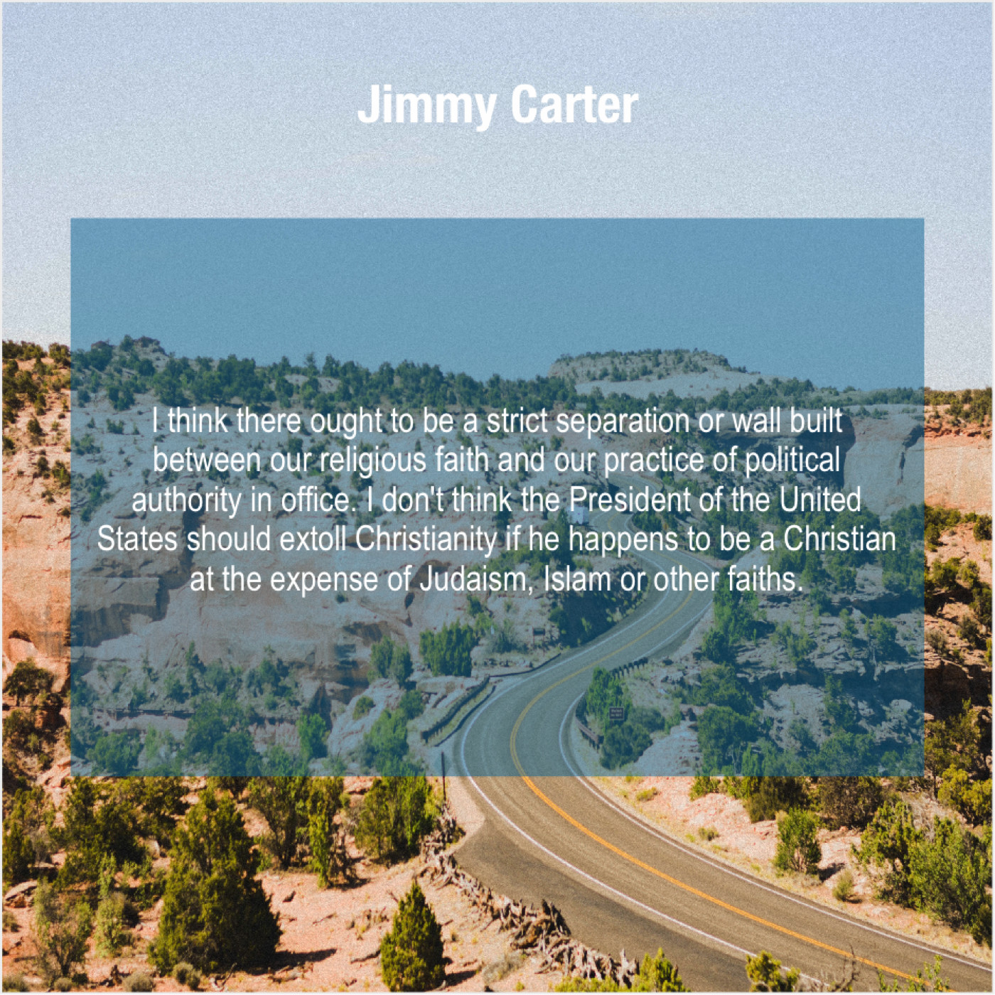 “I think there ought to be a strict separation or wall built between our religious faith and our practice of political authority in office. I don’t think the President of the United States should extoll Christianity if he happens to be a Christian at the expense of Judaism, Islam or other faiths.”