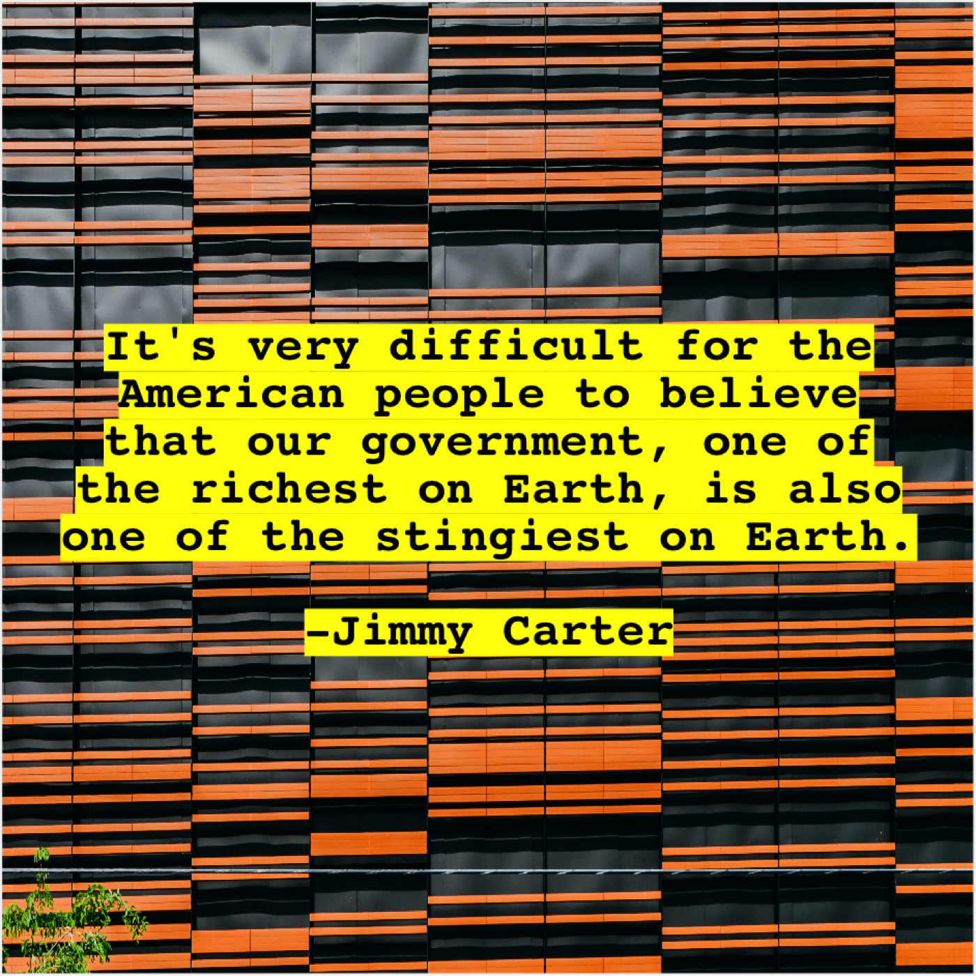 Jimmy Carter Jimmy Carter – It’s very difficult for the… November 14, 2018 admin “It’s very difficult for the American people to believe that our government, one of the richest on Earth, is also one of the stingiest on Earth.”-Jimmy Carter