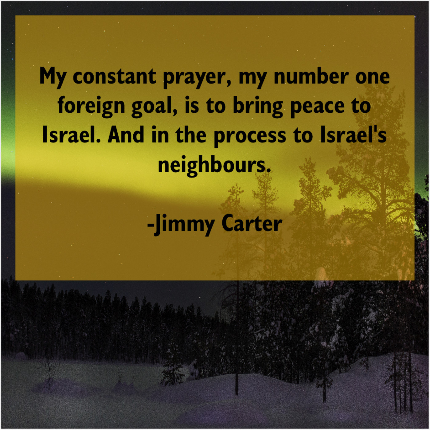 Jimmy Carter Jimmy Carter – My constant prayer, my number… August 9, 2019 admin “My constant prayer, my number one foreign goal, is to bring peace to Israel. And in the process to Israel’s neighbours.”-Jimmy Carter