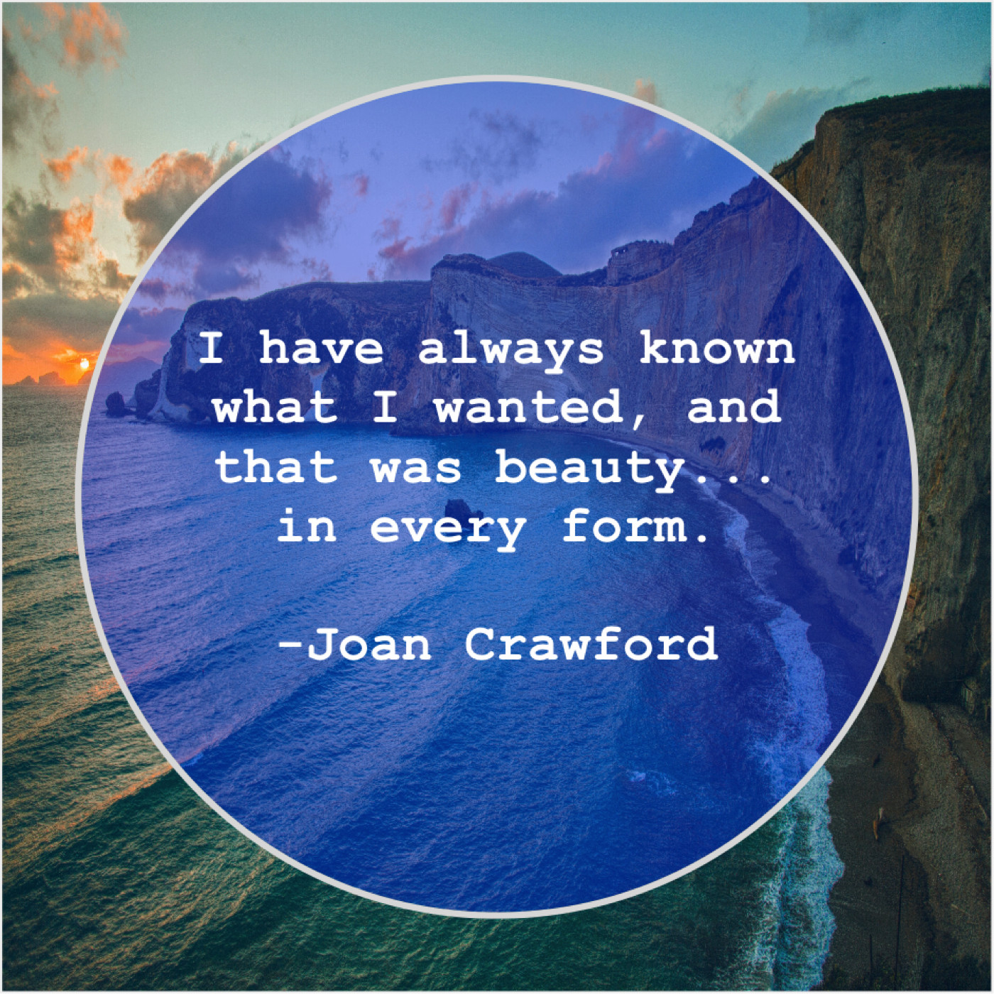 Joan Crawford Joan Crawford – I have always known what… June 6, 2019 admin “I have always known what I wanted, and that was beauty… in every form.”-Joan Crawford