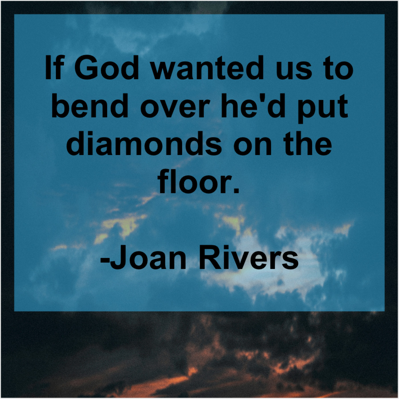 Joan Rivers Joan Rivers – If God wanted us to… January 28, 2019 admin “If God wanted us to bend over he’d put diamonds on the floor.”-Joan Rivers