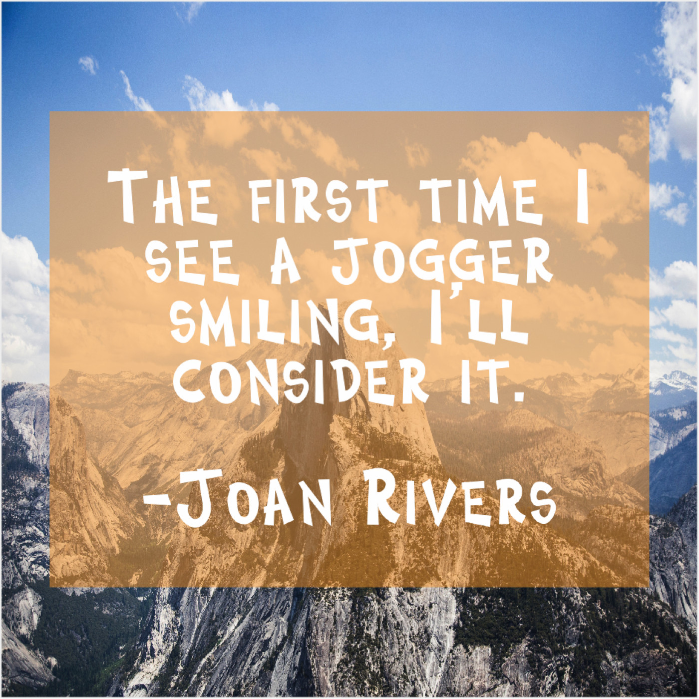Joan Rivers Joan Rivers – The first time I see… May 29, 2019 admin “The first time I see a jogger smiling, I’ll consider it.”-Joan Rivers