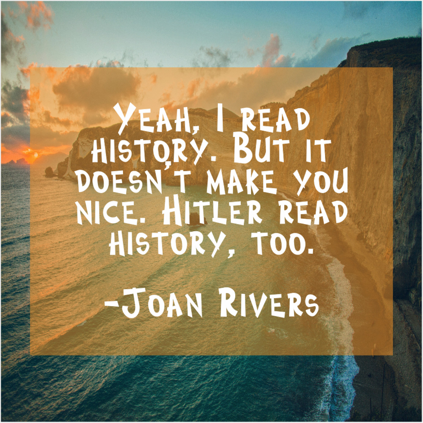 Joan Rivers Joan Rivers – Yeah, I read history. But… August 8, 2019 admin “Yeah, I read history. But it doesn’t make you nice. Hitler read history, too.”-Joan Rivers