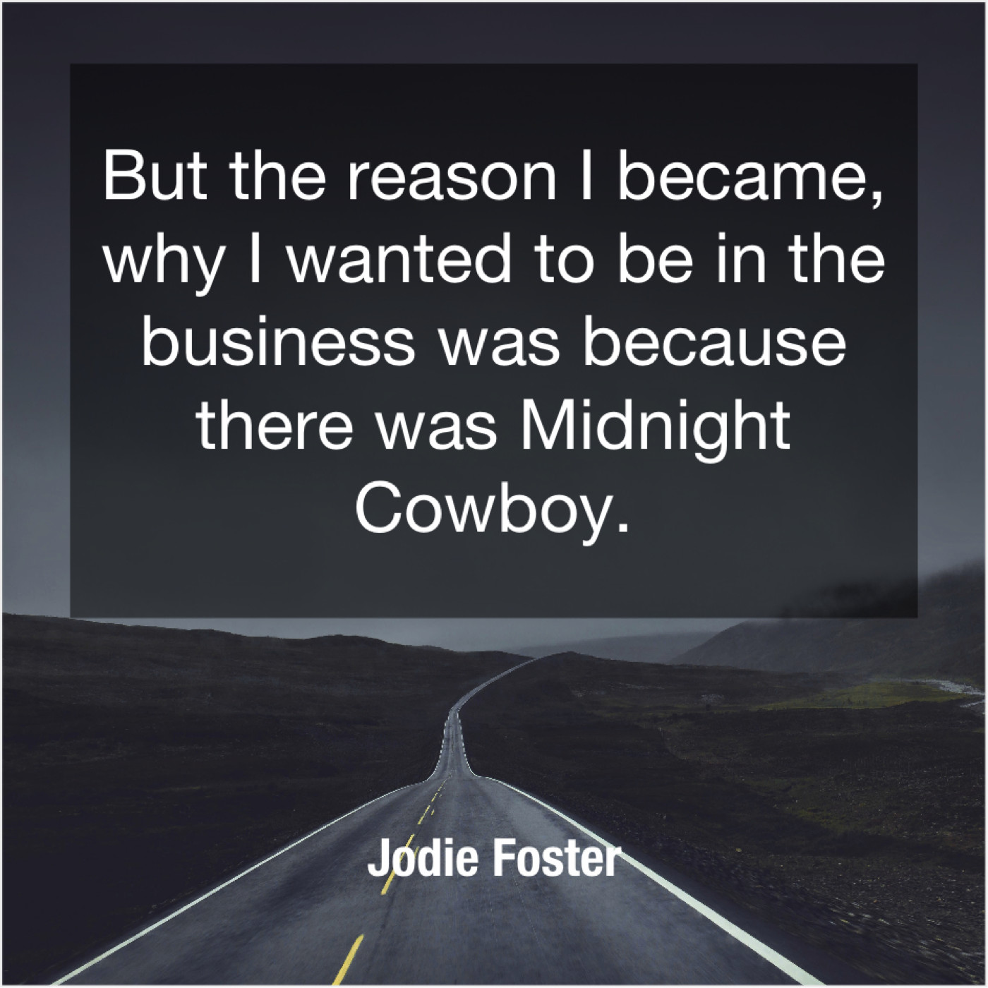 Jodie Foster Jodie Foster – But the reason I became… September 23, 2019 admin “But the reason I became, why I wanted to be in the business was because there was Midnight Cowboy.”-Jodie Foster