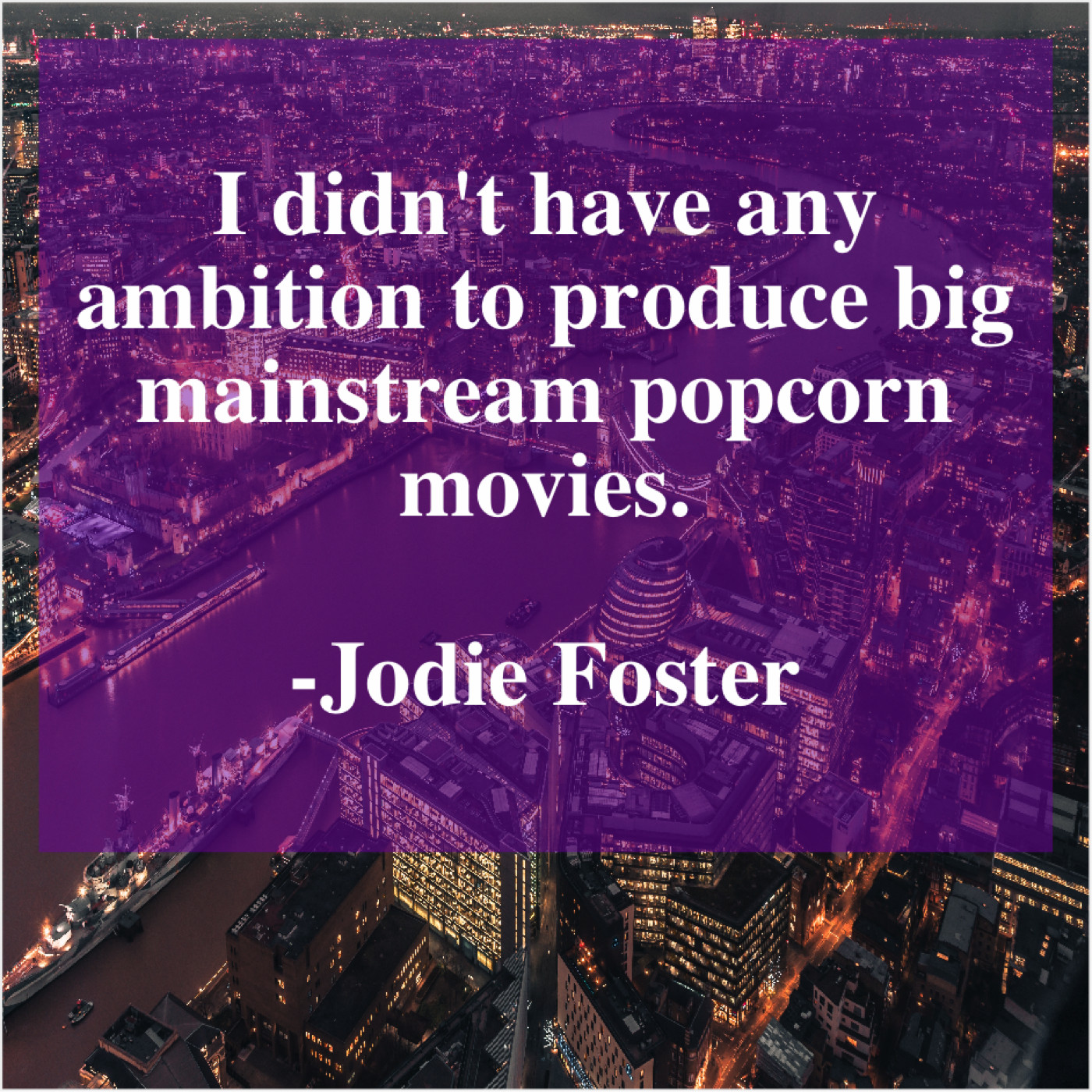 Jodie Foster Jodie Foster – I didn’t have any ambition… June 2, 2019 admin “I didn’t have any ambition to produce big mainstream popcorn movies.”-Jodie Foster