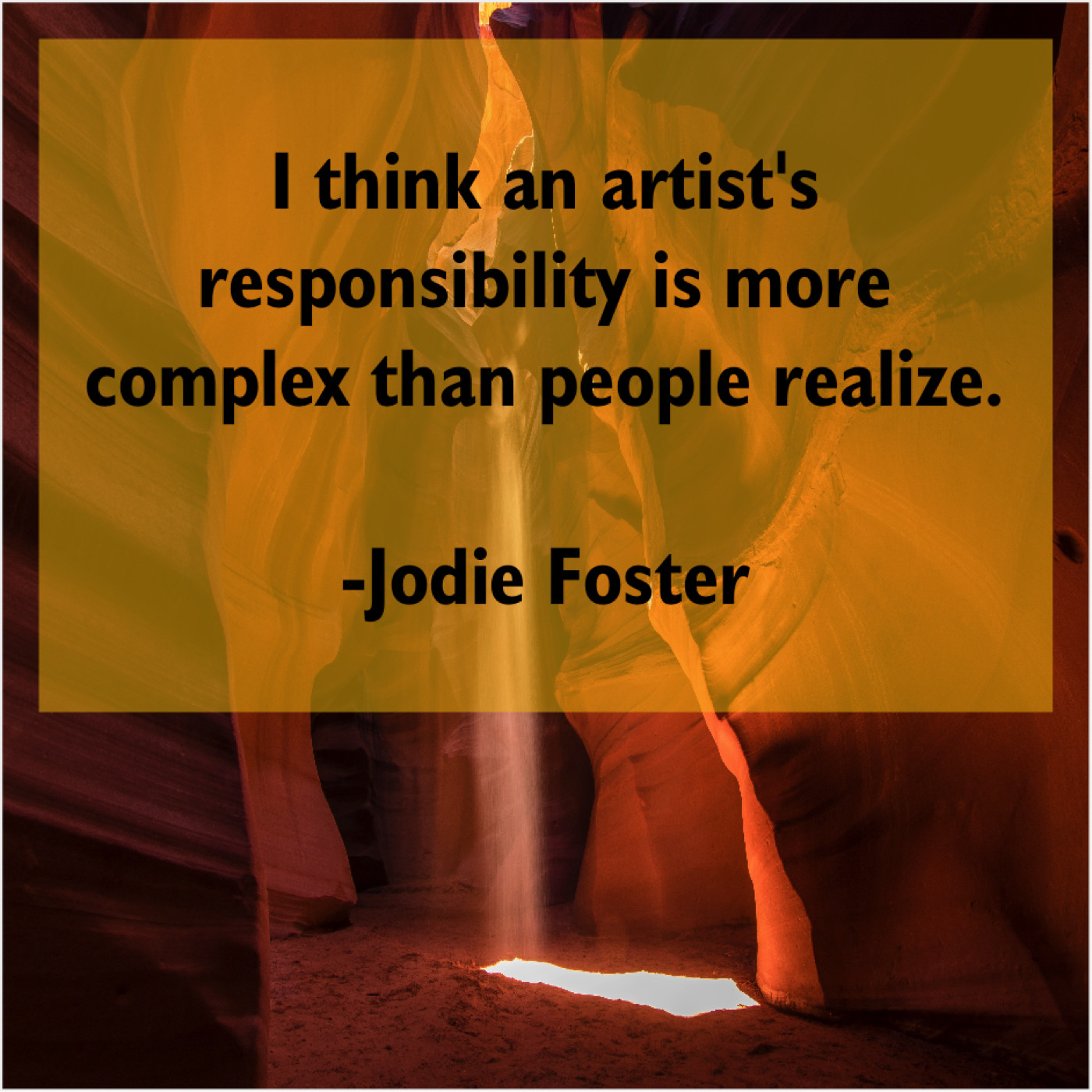 Jodie Foster Jodie Foster – I think an artist’s responsibility… December 22, 2018 admin “I think an artist’s responsibility is more complex than people realize.”-Jodie Foster