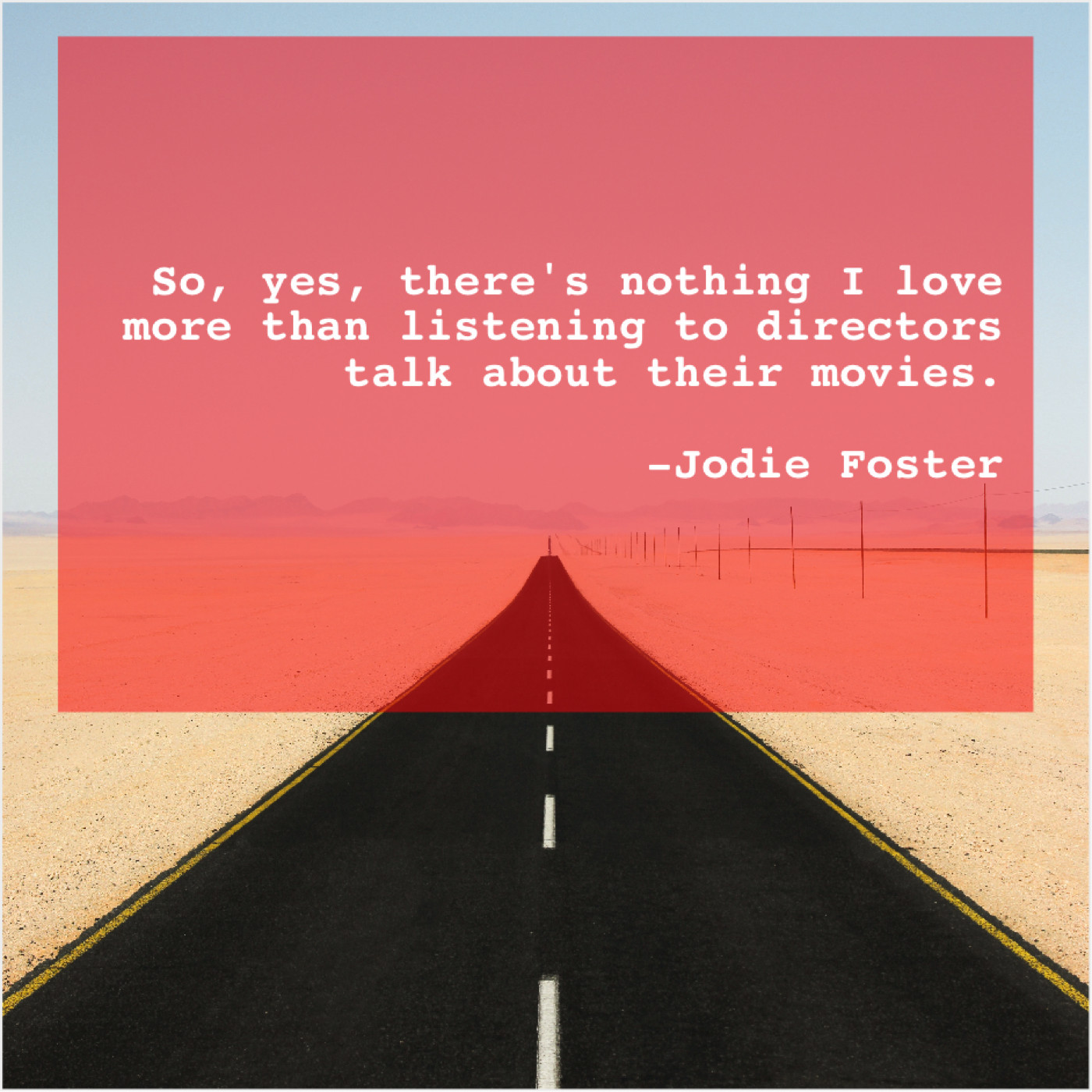 Jodie Foster Jodie Foster – So, yes, there’s nothing I… August 28, 2019 admin “So, yes, there’s nothing I love more than listening to directors talk about their movies.”-Jodie Foster