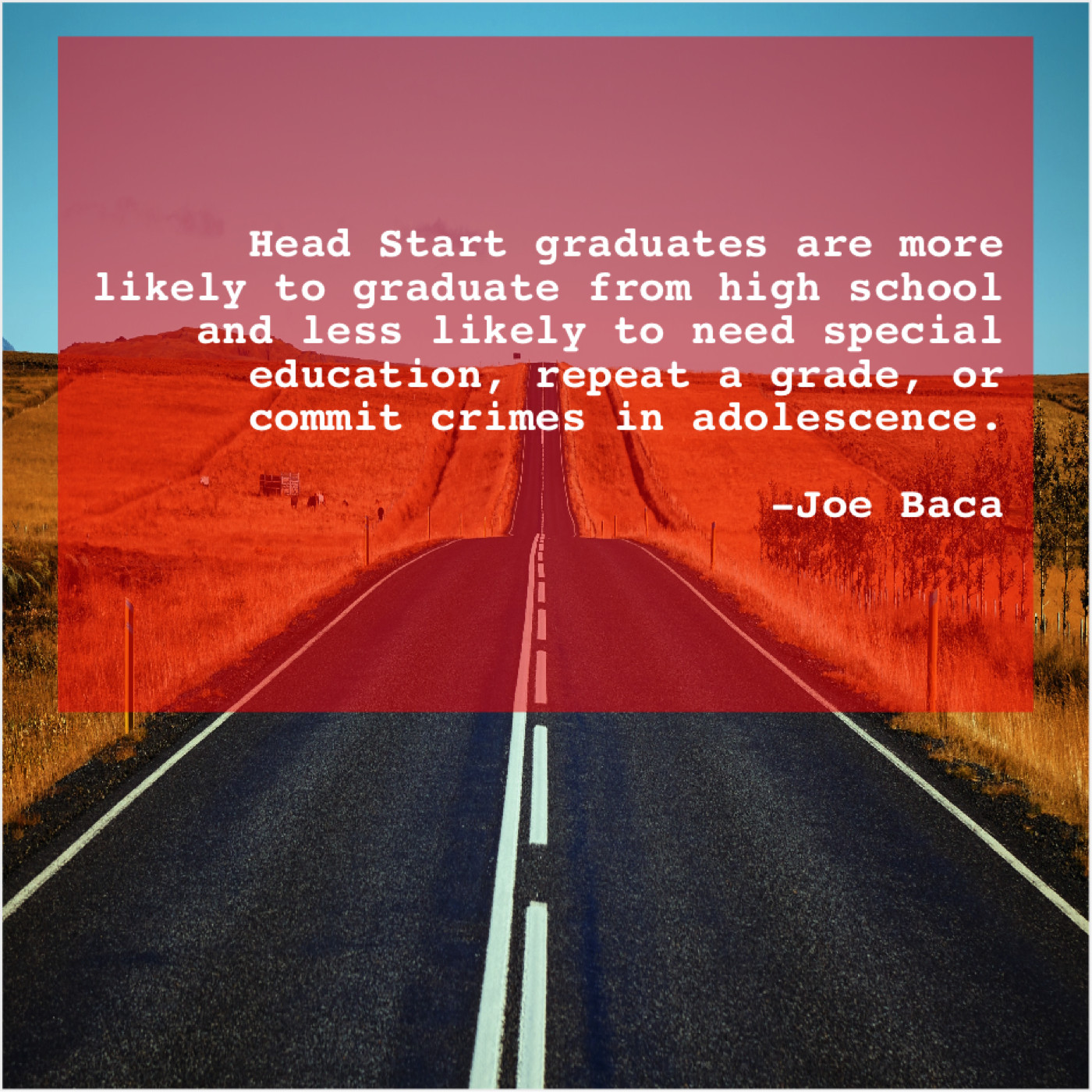 Joe Baca Joe Baca – Head Start graduates are more… June 25, 2019 admin “Head Start graduates are more likely to graduate from high school and less likely to need special education, repeat a grade, or commit crimes in adolescence.”-Joe Baca