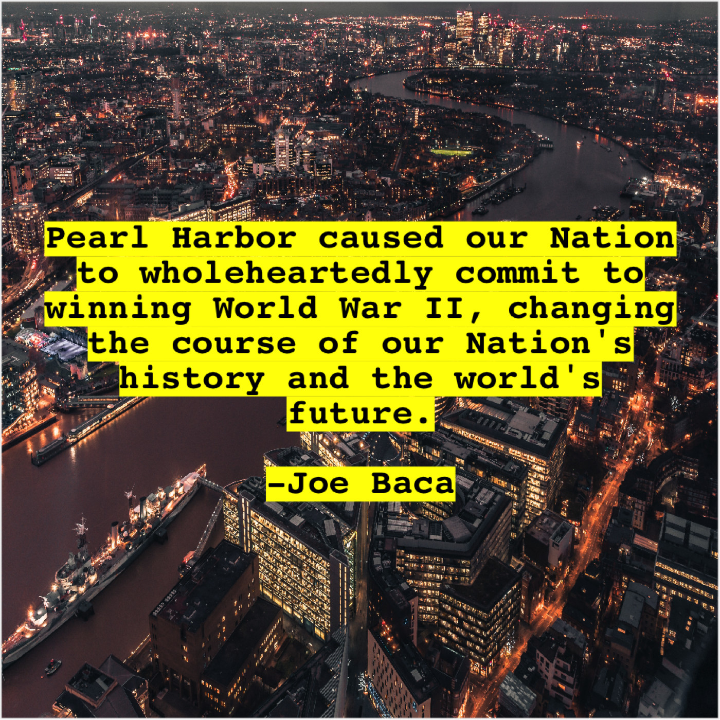 “Pearl Harbor caused our Nation to wholeheartedly commit to winning World War II, changing the course of our Nation’s history and the world’s future.”