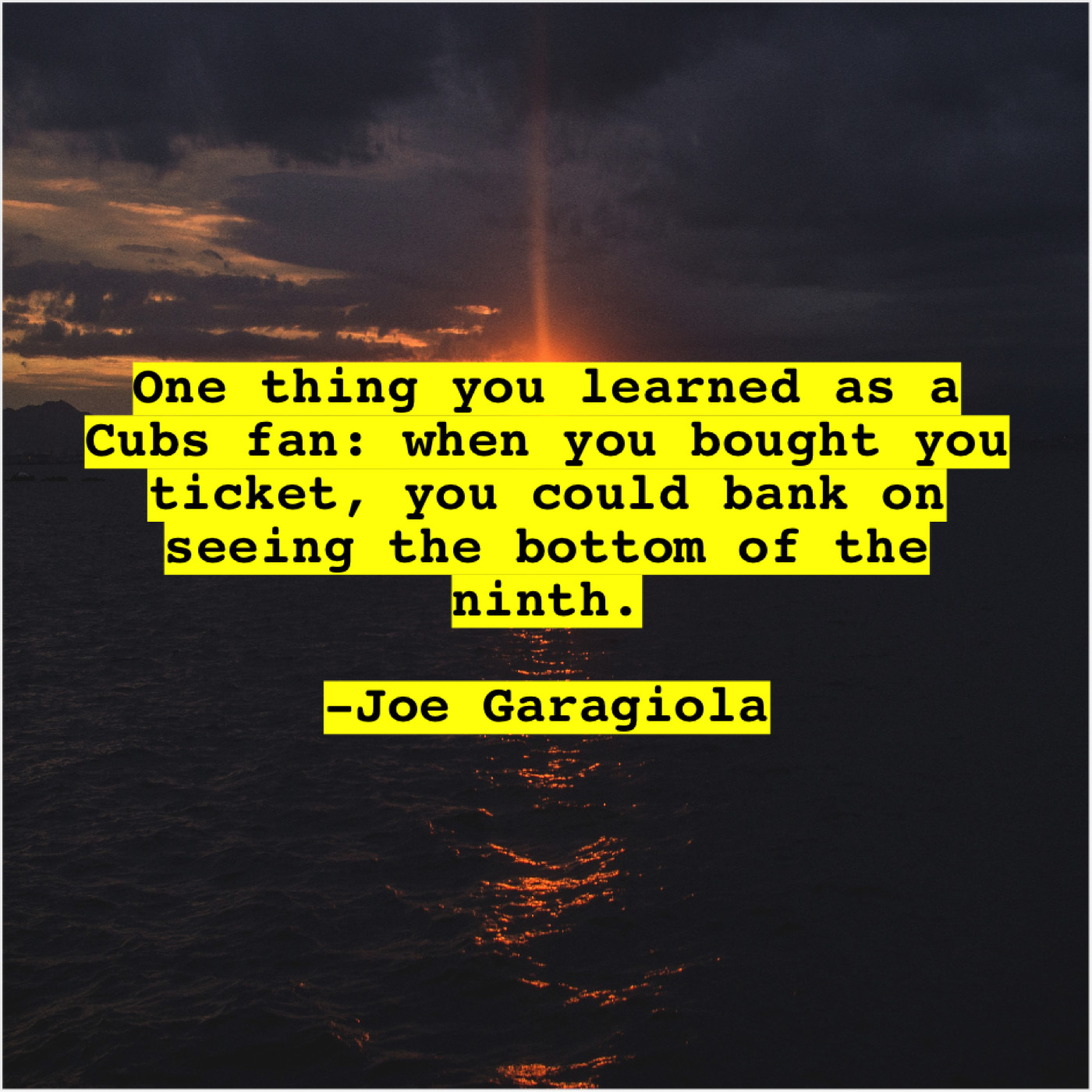 Joe Garagiola Joe Garagiola – One thing you learned as… October 2, 2019 admin “One thing you learned as a Cubs fan: when you bought you ticket, you could bank on seeing the bottom of the ninth.”-Joe Garagiola